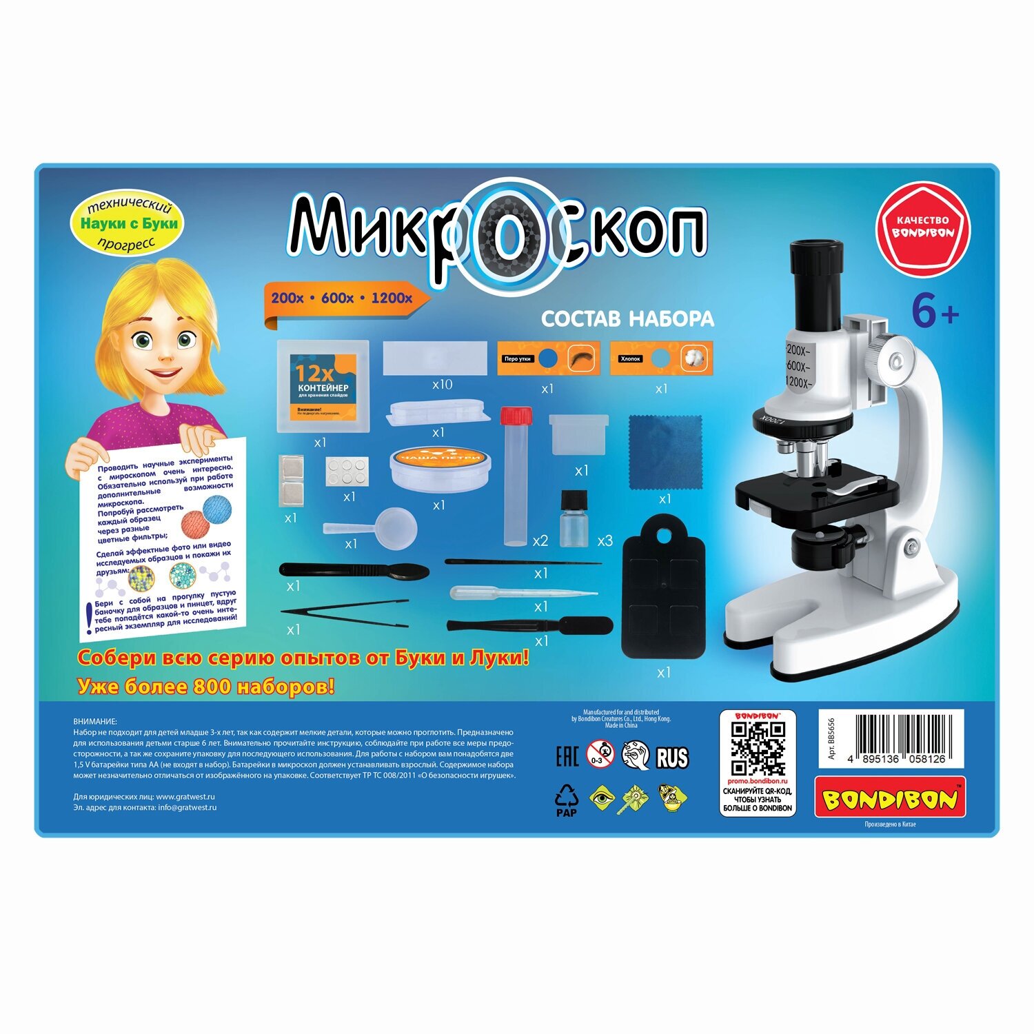 Набор для опытов с микроскопом ТМ Bondibon подойдет абитуриентам, станет хорошим подарком школьникам на 1 сентября, детям на новый год, день рождения