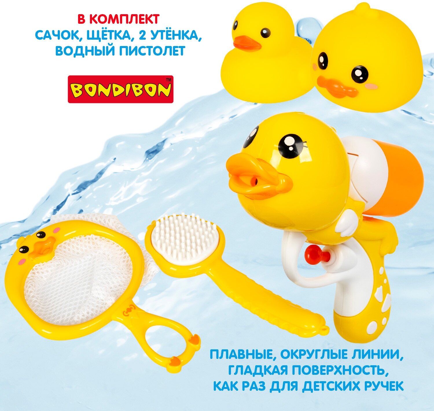 Набор для купания Веселые утята сачок щетка 2 утенка водный пистолет Bondibon