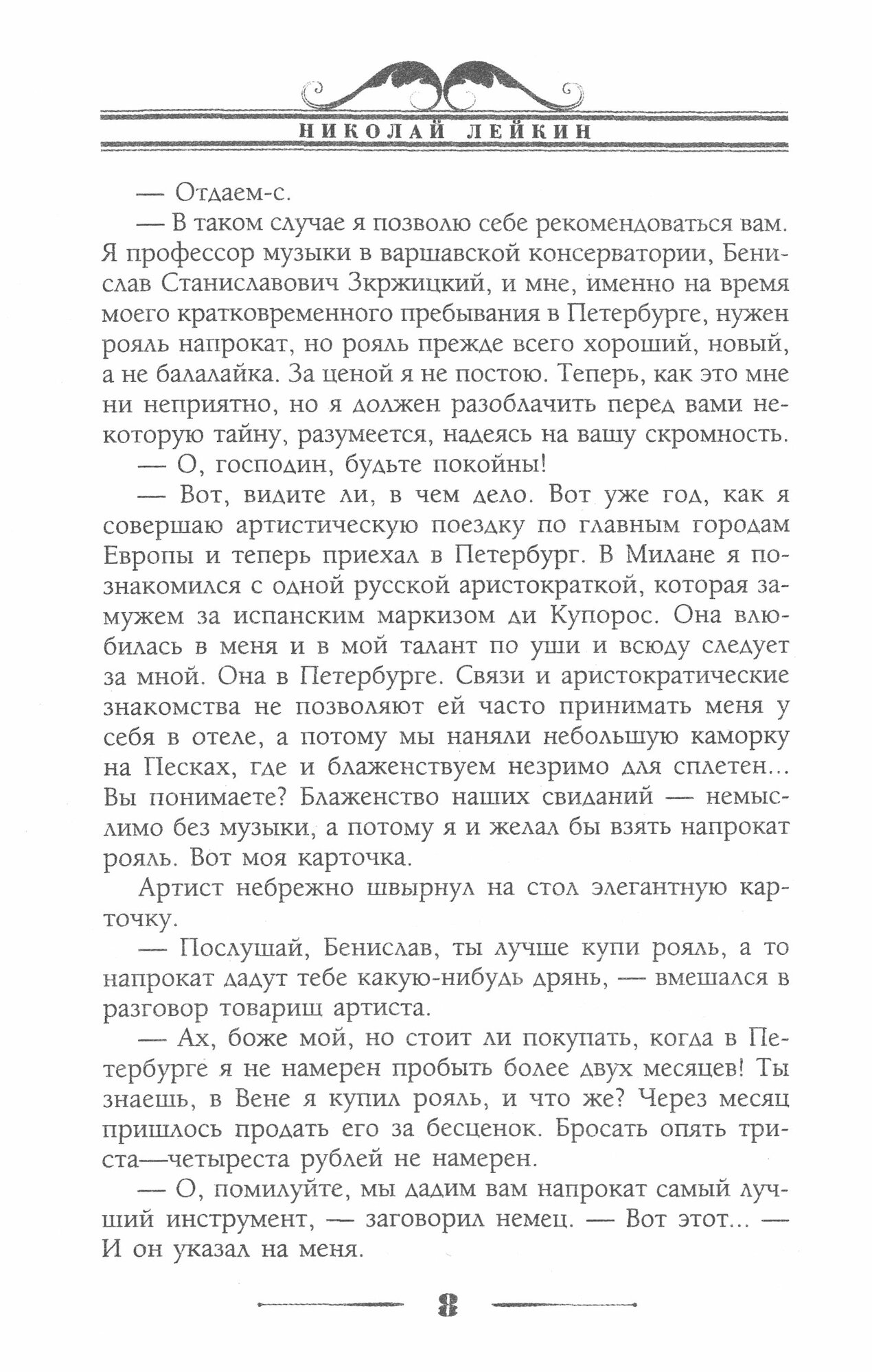 В очередном сборнике юмористических рассказов Николай Александрович Лейкин удивляет необычными историями из жизни обыкновенных, привычных бытовых предметов: штопора, бутылки шампанского, мелкой купюры, еды и даже рояля. Каждый предмет преломляет происходящее вокруг через свою уникальную призму, пронизывая повествование как символичностью, так и интересными деталями. Не обошел автор вниманием свои излюбленные и хорошо изученные темы, в меньшей степени связанные с предметами: купечество и его образ жизни, странные попутчики в дороге, дачники и игроки, бедность и пьянство. Что бы ни происходило вокруг него, он внимательно подмечает и описывает все, на что падает его взор, будь то определение времени дня по занятиям дам или лунное затмение, и получается это весьма остроумно.