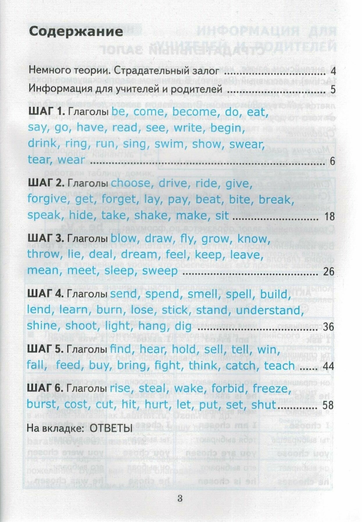 Сборник "Неправильные глаголы" позволяет прочно выучить и довести до автоматизма навык употребления 100 самых частотных неправильных глаголов. Глаголы разделены на группы по способу образования второй и третьей форм. Сборник включает 139 заданий, направленных на отработку употребления этих глаголов в Past Simple, Present Perfect и Past Perfect. Большое внимание уделяется употреблению конструкций страдательного залога (Passive Voice).