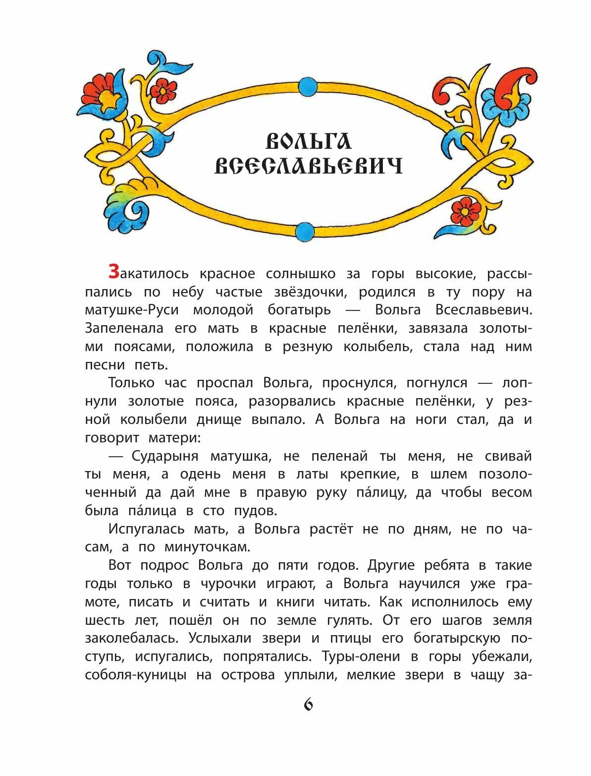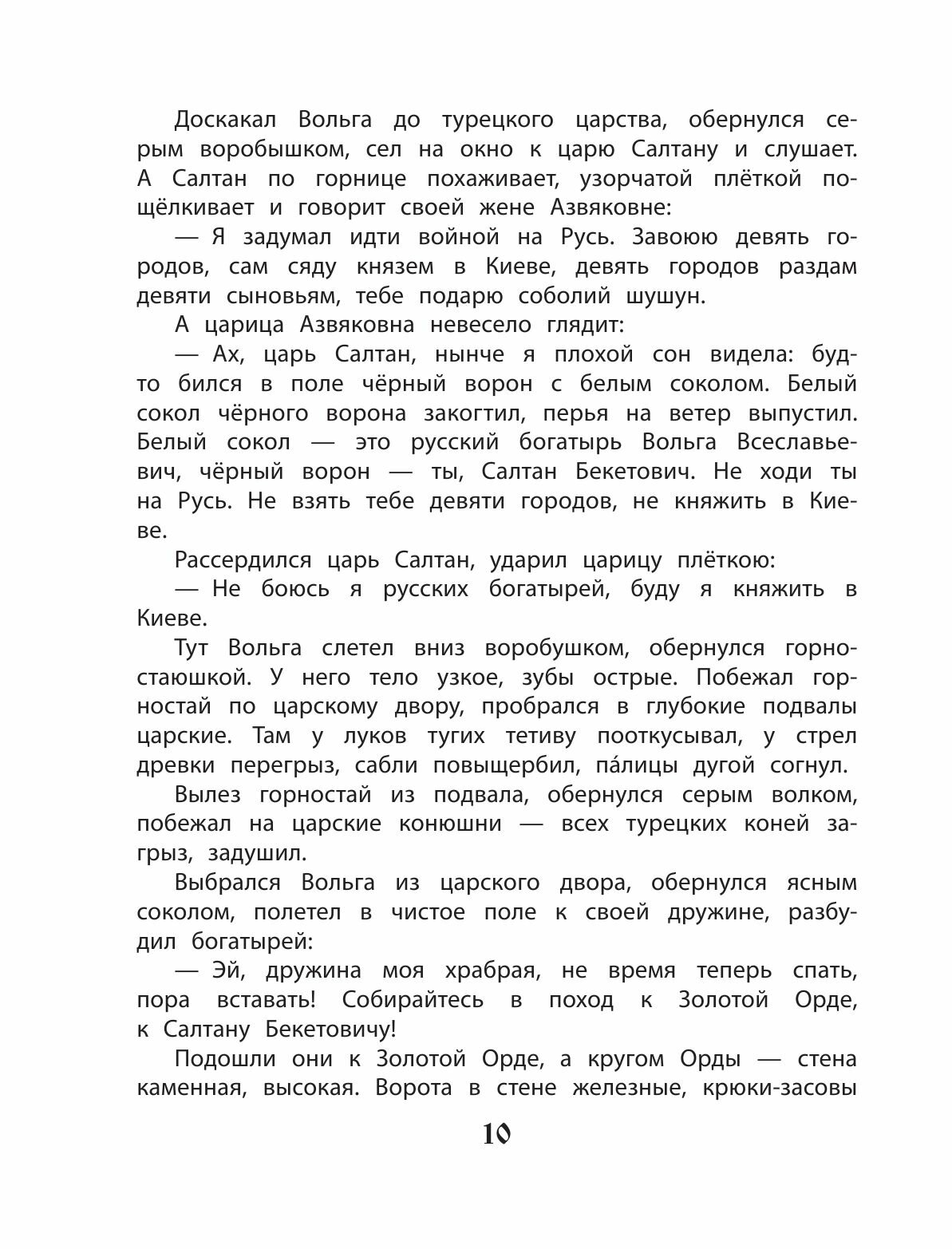 В наш сборник входят наиболее популярные былины Киевского и Новгородского циклов: о Вольге Всеславьевиче, Микуле Селяниновиче, Алёше Поповиче, Добрыне Никитиче, Илье Муромце и Садко. Былины повествуют о важных событиях старины, описывают быт и уклад Древней Руси, рассказывают о надеждах и переживаниях русского народа.