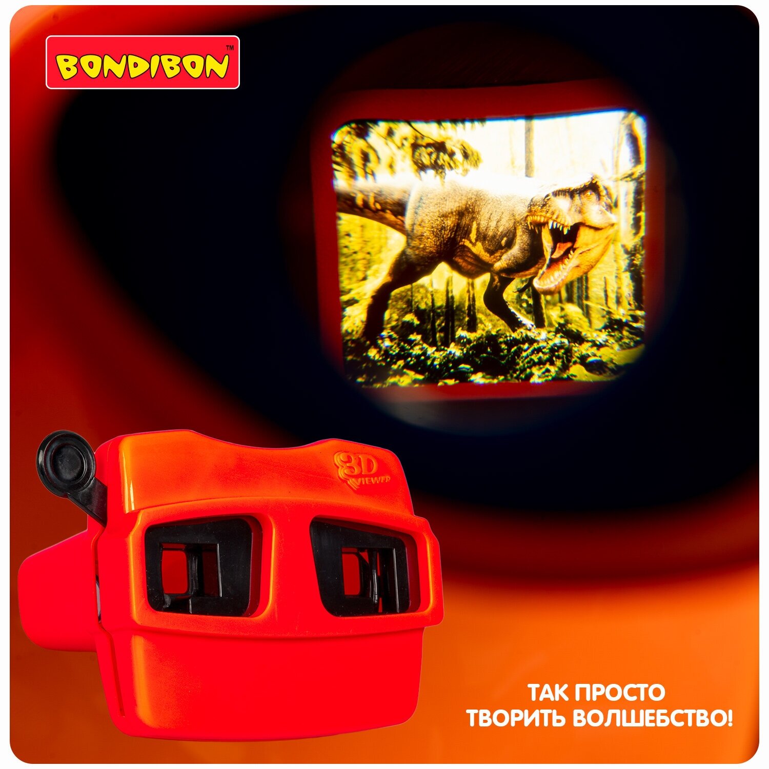 Очки 3D квадратные красные 2 диска со слайдами животные и динозавры Bondibon