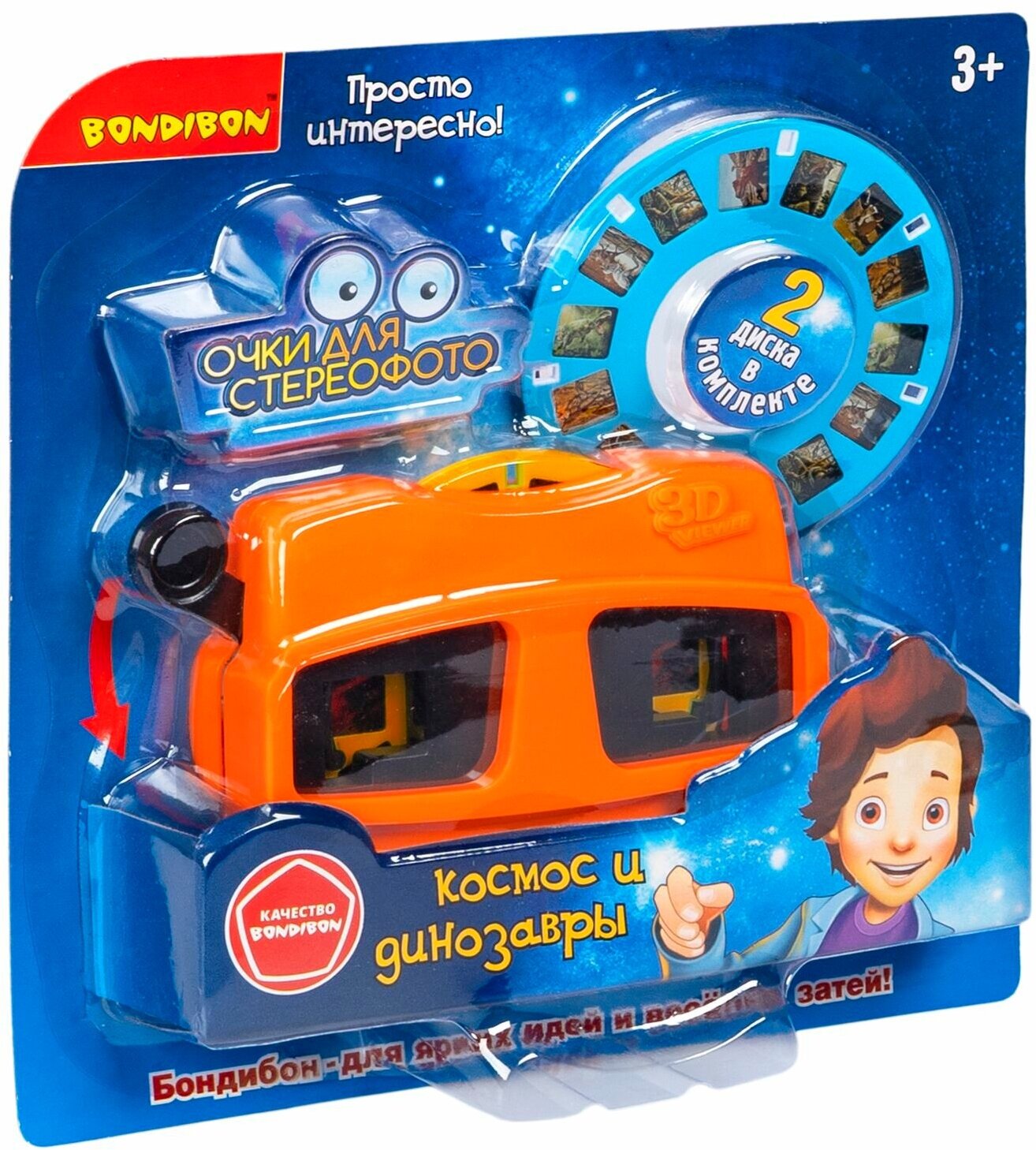Очки 3D оранжевые 2 диска со слайдами космос и динозавры Bondibon