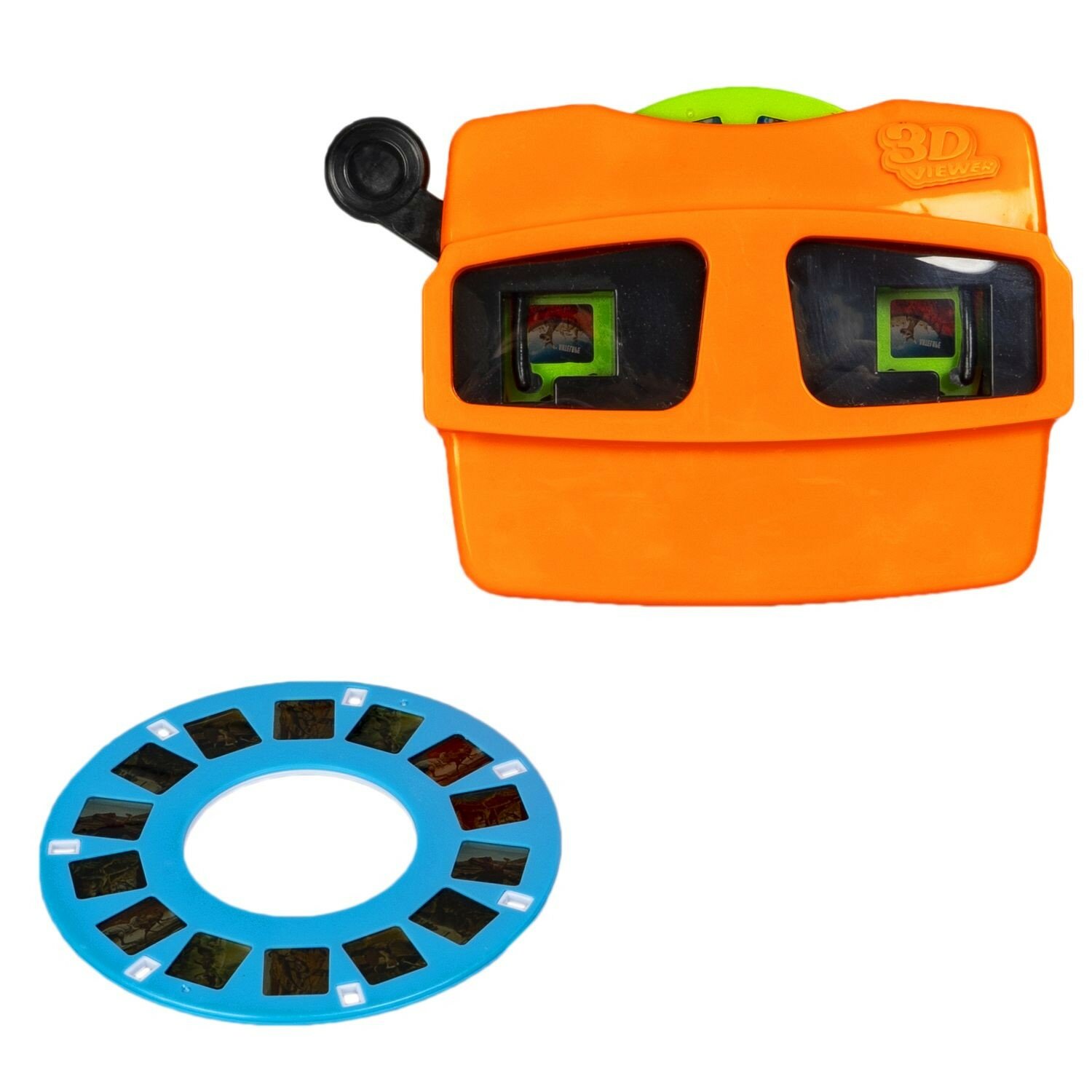 Для просмотра объемных картинок необходимо поместить в портативный проектор диск с цветными слайдами и надеть очки на голову. Яркость изображения регулируется уровнем окружающего освещения. Батарейки не потребуются. Для продолжения просмотра просто поворачивайте диск, не извлекая его из проектора. Компактные размеры позволяют брать детский стереоскоп куда угодно.