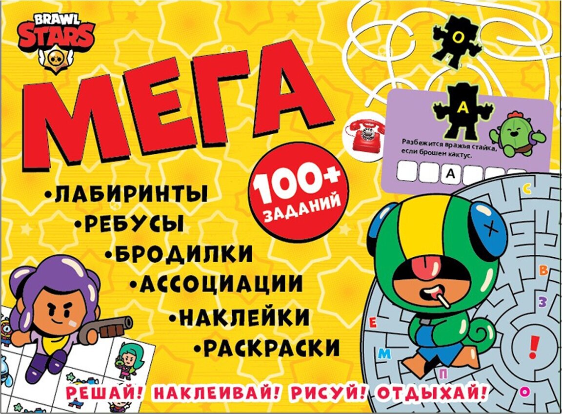 Мега новинка от Brawl Stars - большая книга-активити для детей с лабиринтами и ребусами, бродилками и ассоциациями! Это увлекательное путешествие с любимыми героями для девочек и мальчиков в мир шифров, головоломок и раскрасок. Выполняя интересные задания на логику и разгадывая загадки, фанаты точно не соскучатся, а удобный размер альбома позволит взять его с собой в дорогу. Увлекательная развивающая игра с наклейками для развития интеллекта ребенка. Решай, наклеивай, рисуй, отдыхай с нашей новой супер познавательной книгой!