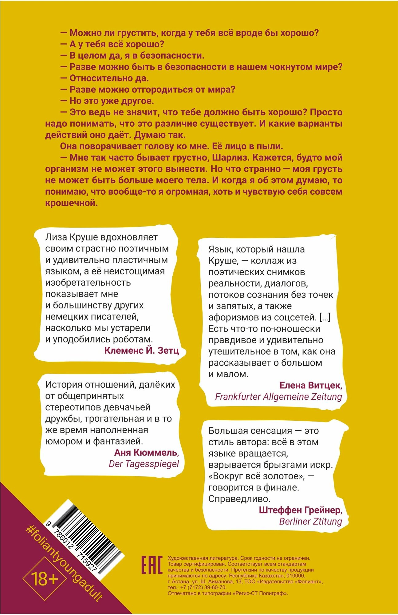 Проглотила за два дня новиночку этого года. Итак, удивительные и невероятно правдивые приключения двух девочек в провинциальном немецком городке — родитель для своих родителей Шарлиз и почти теряющая надежду Гвен совершенно случайно цепляются друг за друга на фоне не самых благоприятных жизненных обстоятельств. Это если вкратце. А что встретится в книге на самом деле: поток сознания Сильвии Платт, ироничные пассажи Джона Грина, обретеная семья, мир удушающего лета «Девственниц-сам**бийц» (только все кончится хорошо, очевидно), советы с настоящим пони и игрушечным осьминогом, попытки удержать семью и не сдаваться.