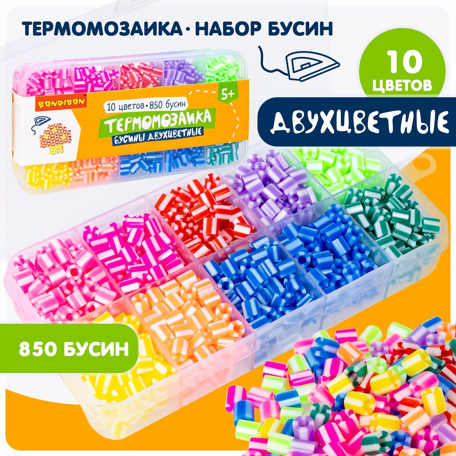 Термомозаика бусины двухцветные 10 цветов 850 бусин Bondibon