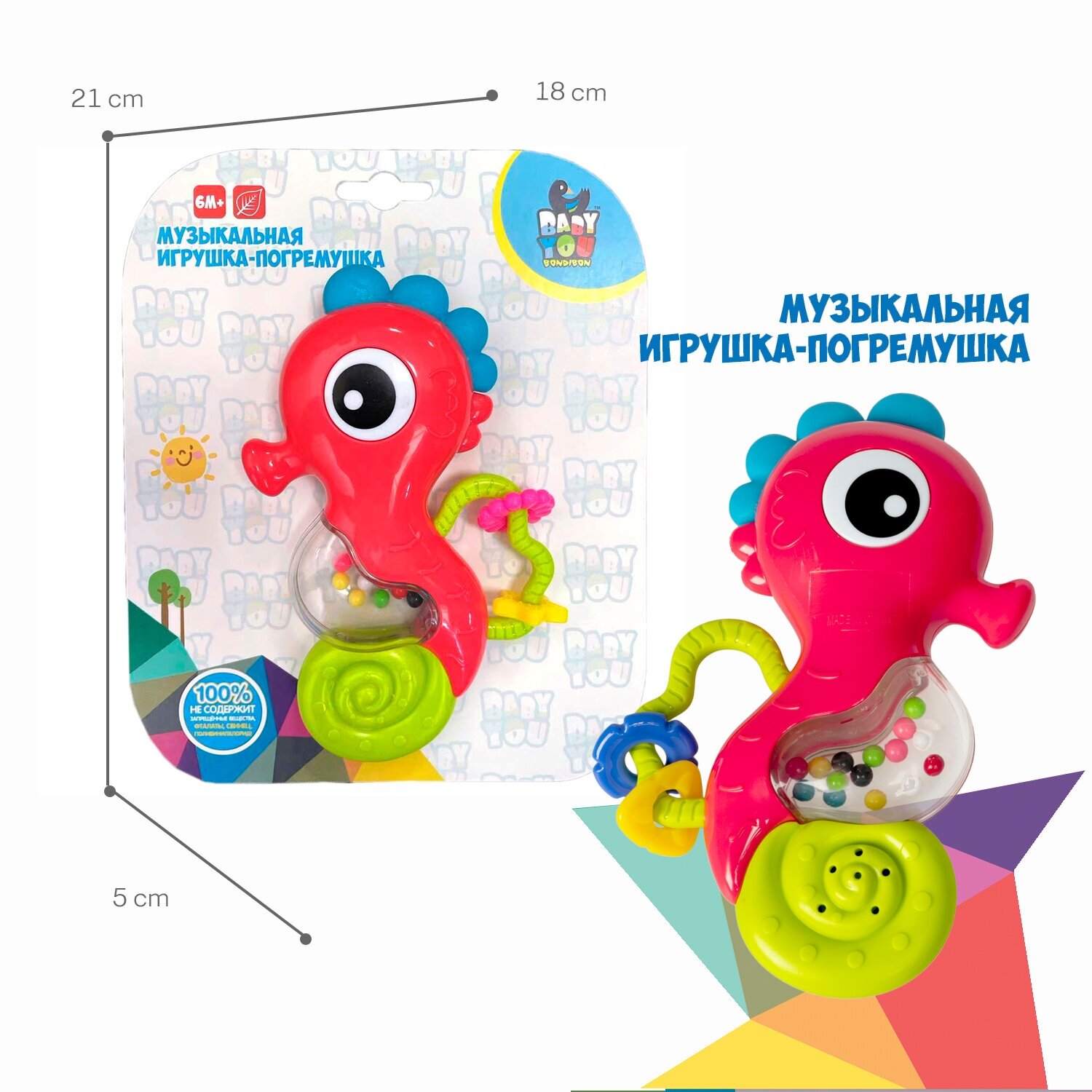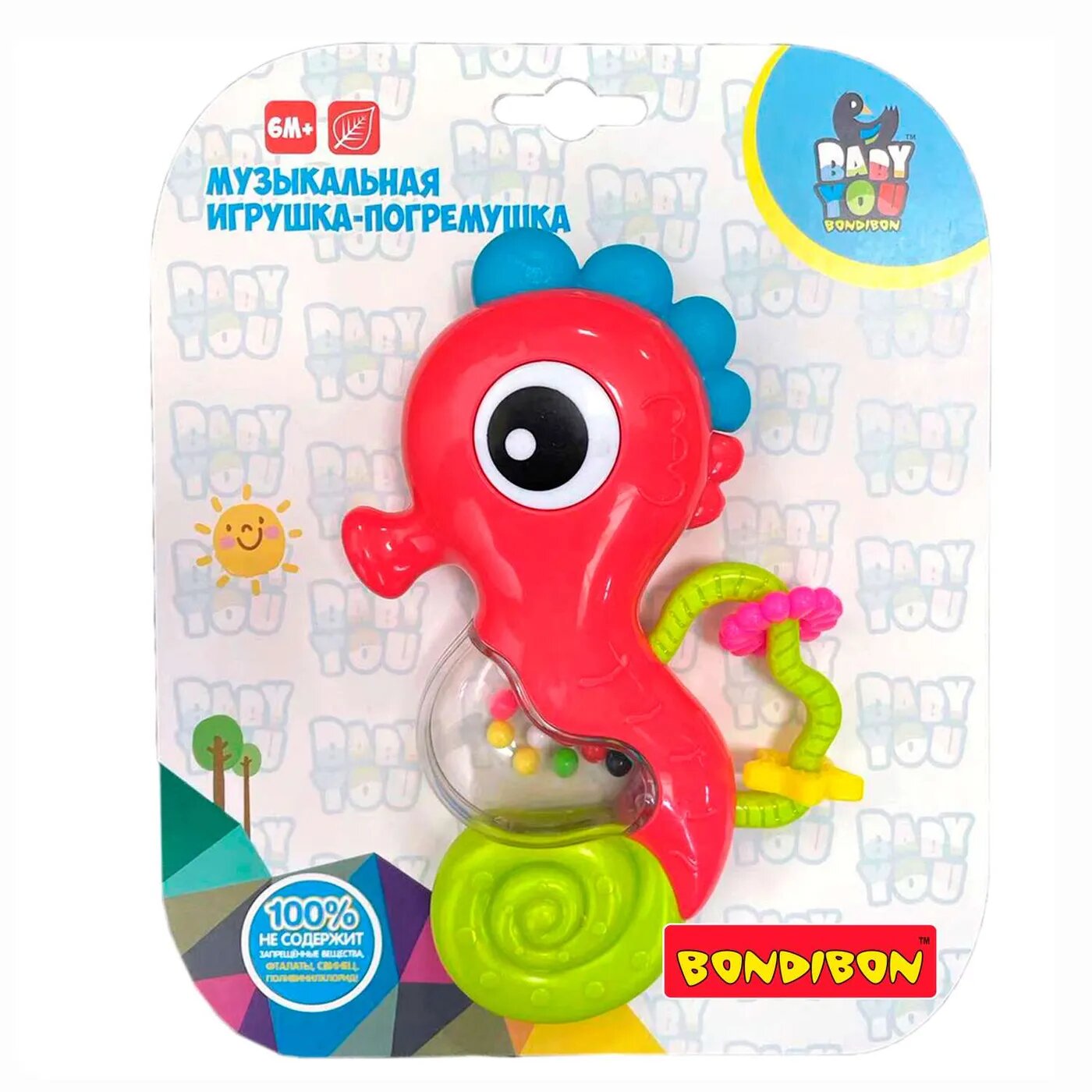Погремушка музыкальная с прорезывателем Морской конёк серии Baby you от Bondibon способствует формированию тактильных ощущений, восприятию звуков, цветов и форм, помогает в развитии мелкой моторики и воображения Вашего малыша.