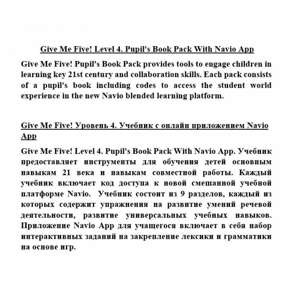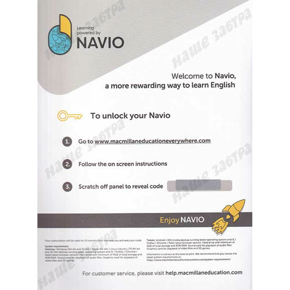 Книга для учащегося издается с кодом доступа к цифровому приложению Navio Арр. Приложение Navio App для учащегося включает в себя набор интерактивных заданий на закрепление лексики и грамматики на основе подхода геймификации.