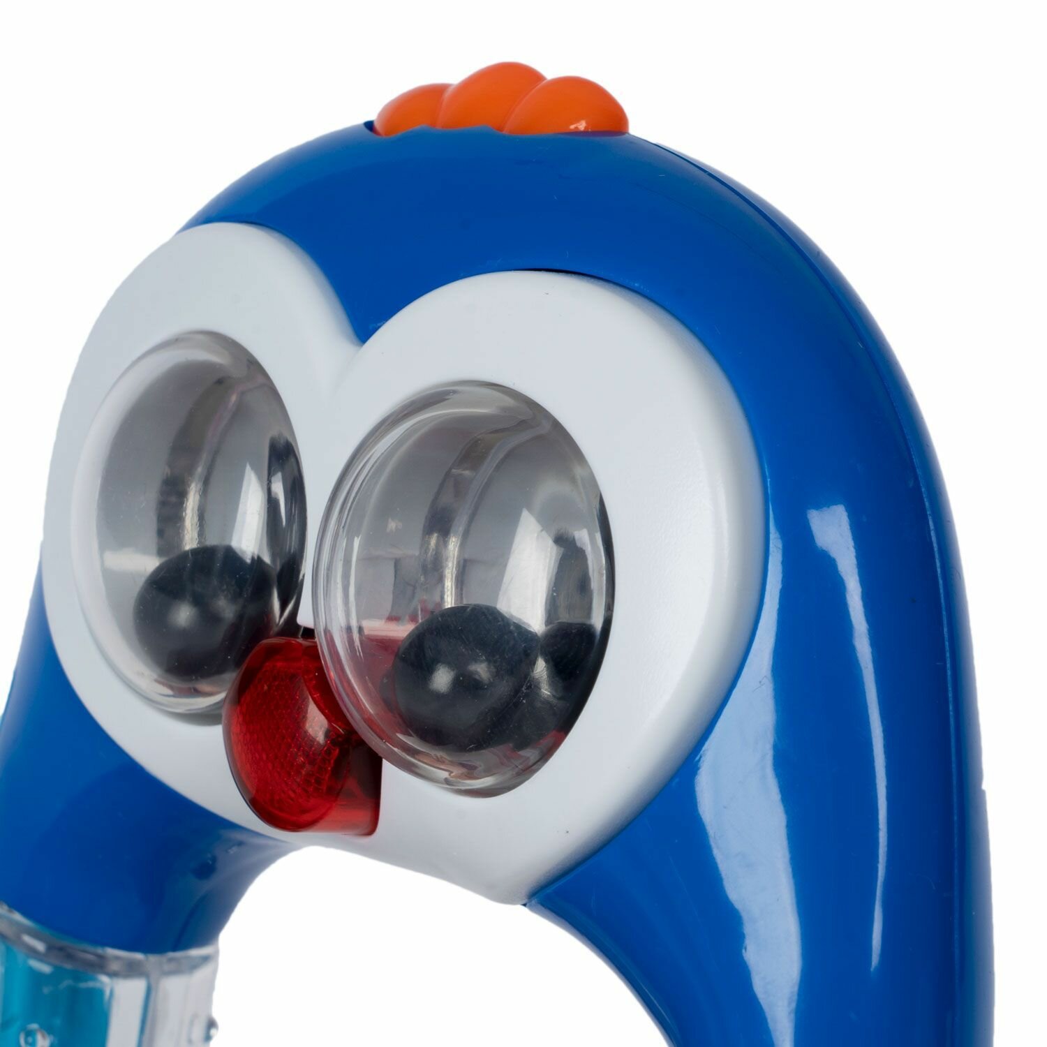 Просто отдайте эту игрушку ребенку - и он сам достаточно быстро разберется, как с ней обращаться. Нажмите хохолок на голове фигурки, заиграет мелодия, сопровождая звук красными бликами. Еще раз нажмите на хохолок, и игрушка издаст забавный булькающий звук. Дайте ребенку самостоятельно освоить новые для него навык, и радости не будет предела.