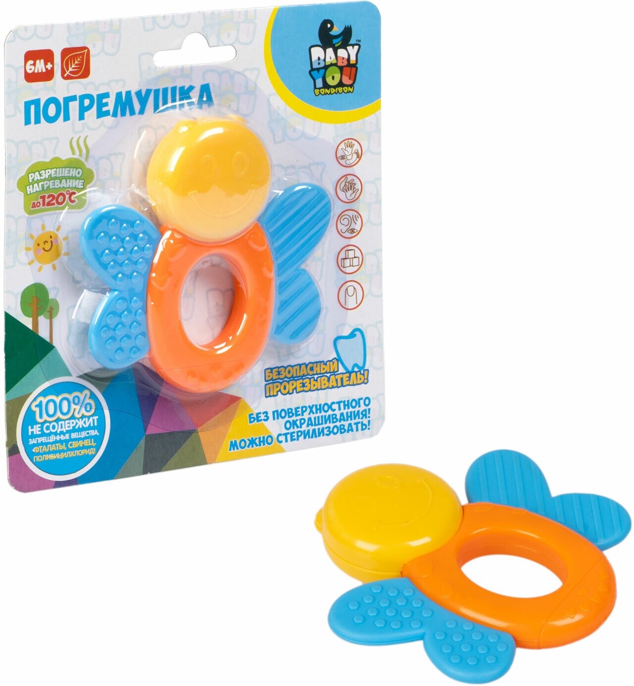Игрушка Пчелка серии Baby you Bondibon способствует формированию тактильных ощущений, восприятию звуков, цветов и форм, помогает в развитии мелкой моторики и воображения Вашего малыша. Это хороший прорезыватель грызунок для зубов, помогающий ребенку снять естественный зуд.