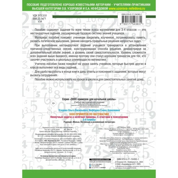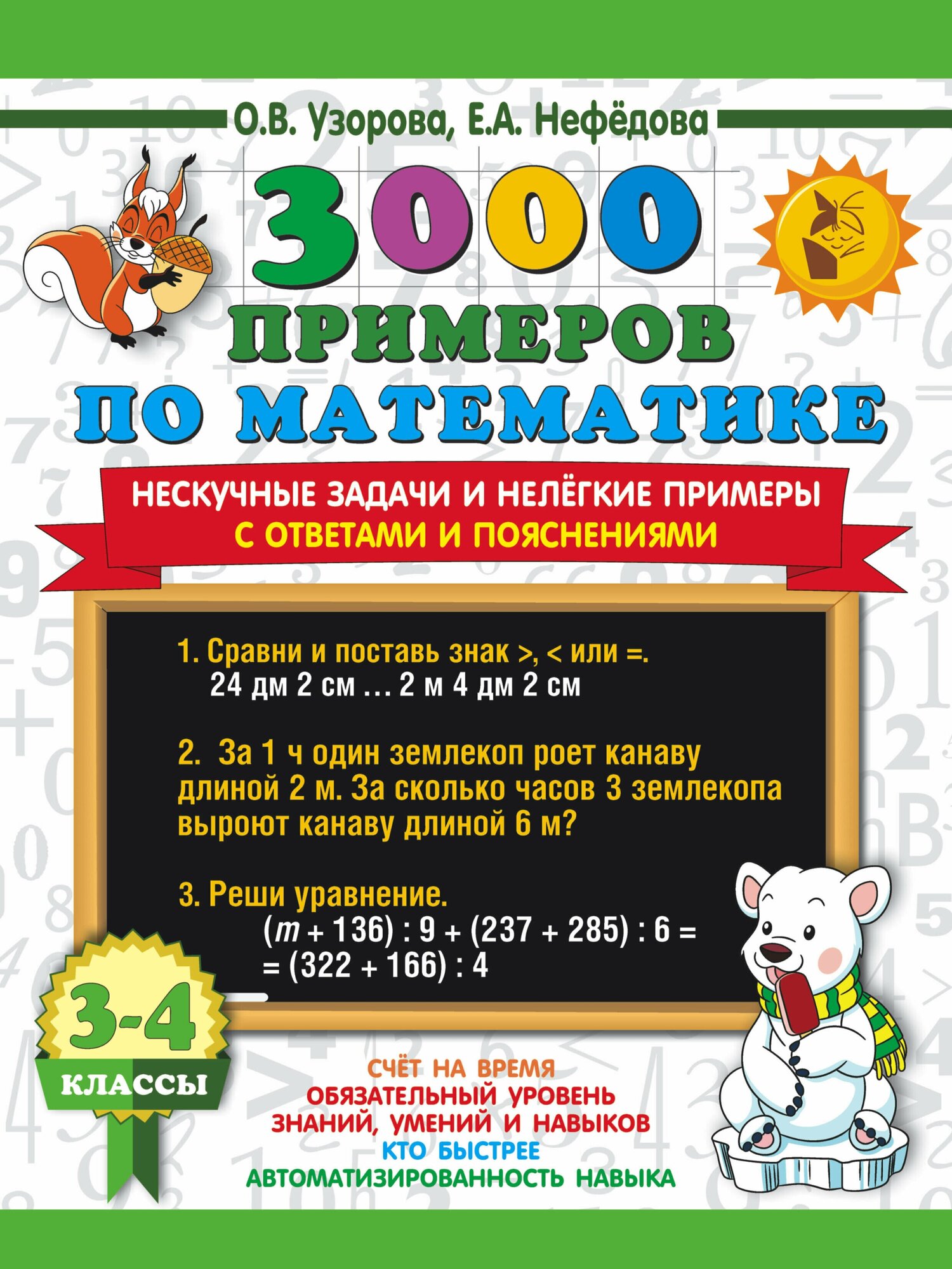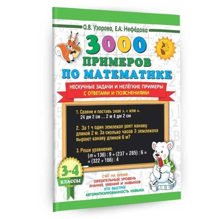 Математика. 3-4 классы. 3000 примеров по математике. Нескучные задачи и нелегкие примеры. С ответами (Елена Алексеевна Нефедова, Ольга Васильевна Узорова); АСТ, 2025