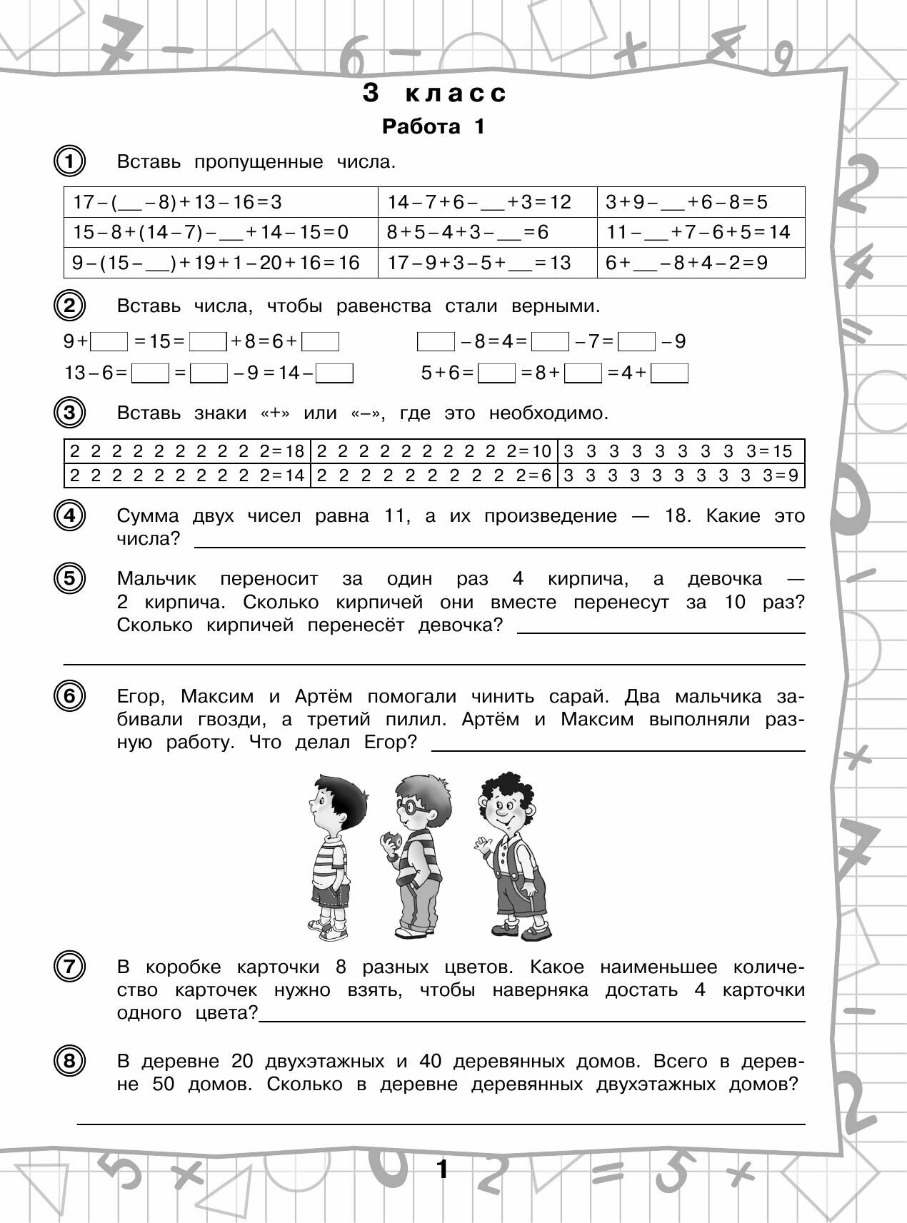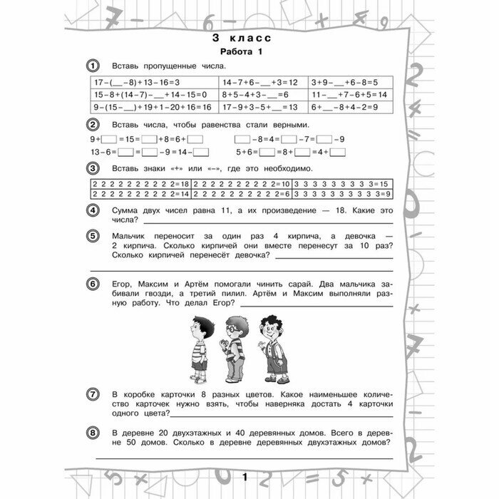 Пособие содержит задания по всем темам курса математики для 3-4 классов. В него включены нестандартные задания, расширяющие базовую систему знаний первоклассников.