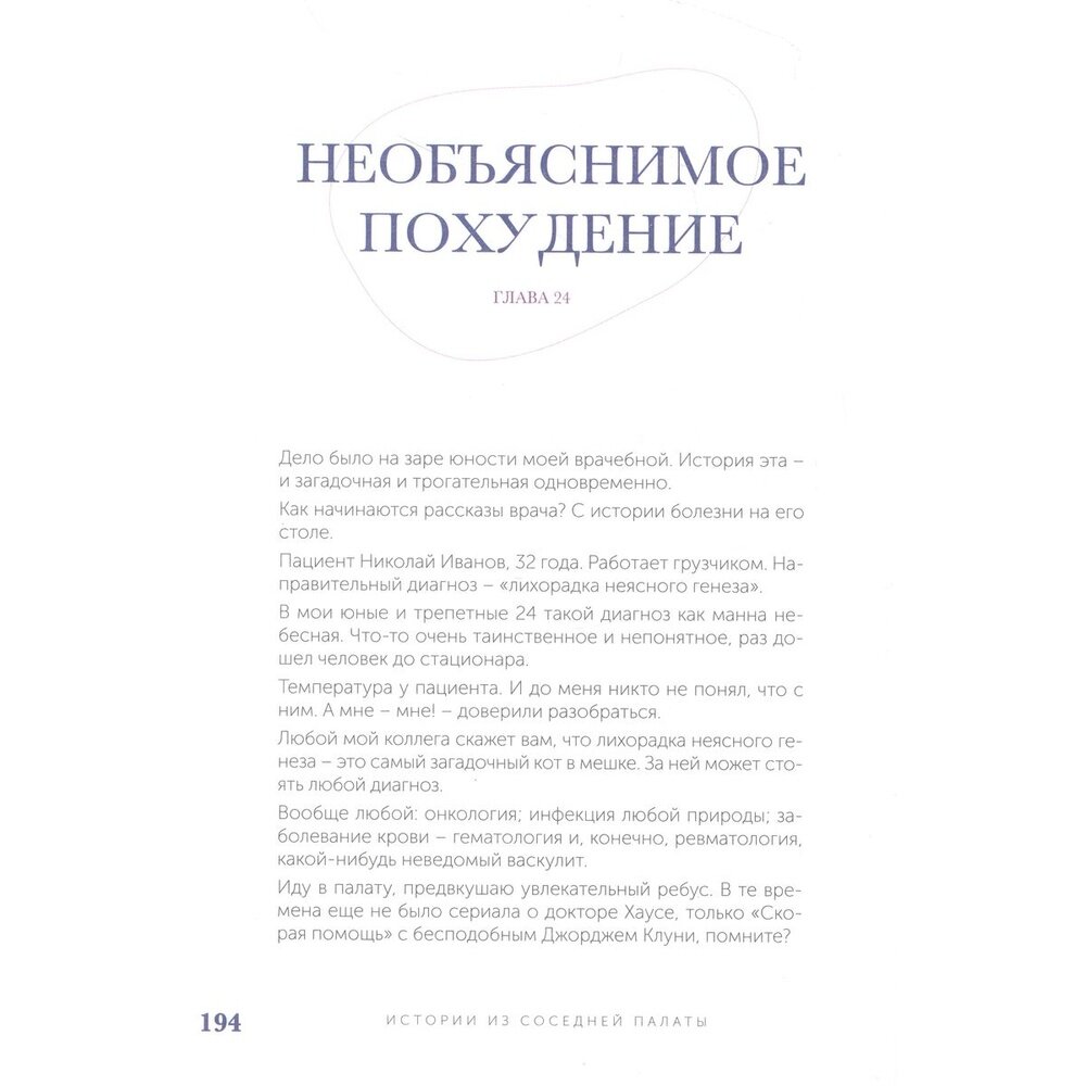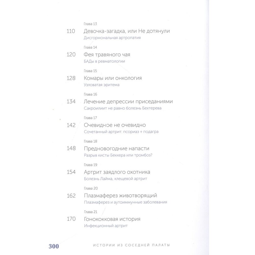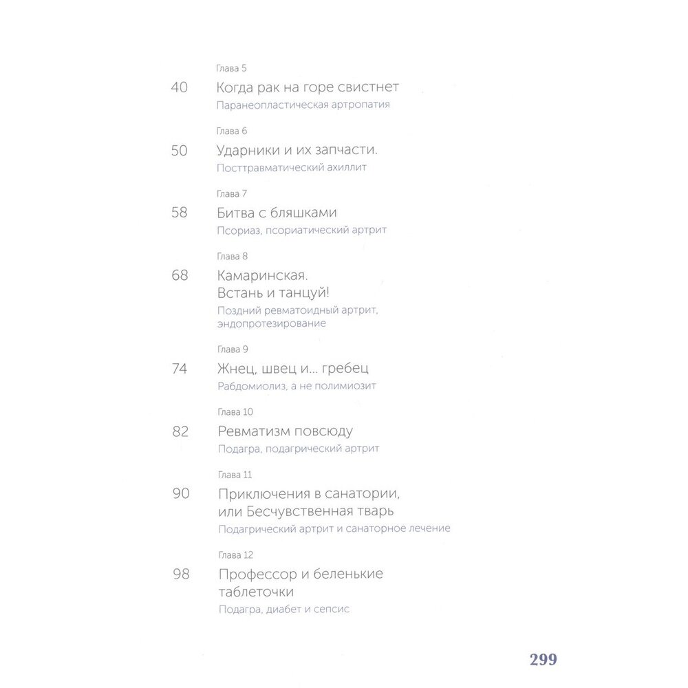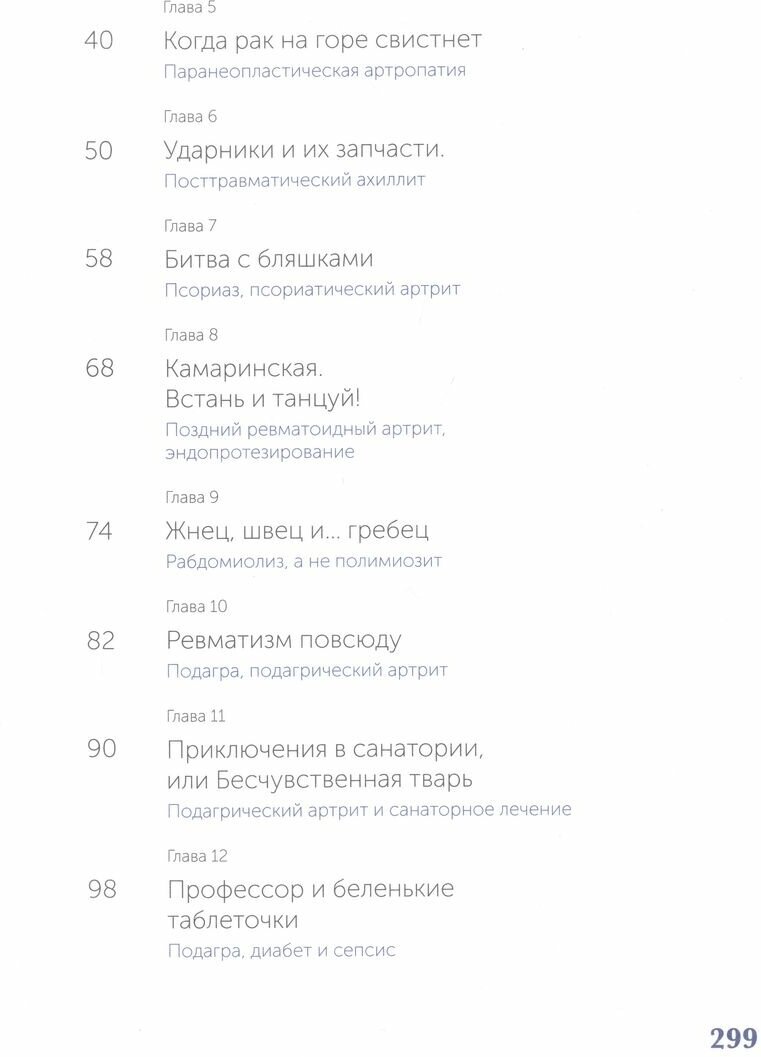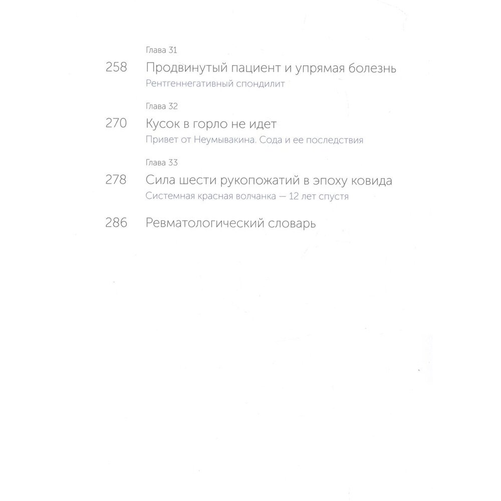 Молодой мужчина, неизвестно почему теряющий вес, дама средних лет, учитель русского языка, которая не может проглотить ни куска еды, охотник, у которого без видимых причин распухло колено. Что объединяет этих людей? Все они пришли на прием к ревматологу и оказались героями книги.