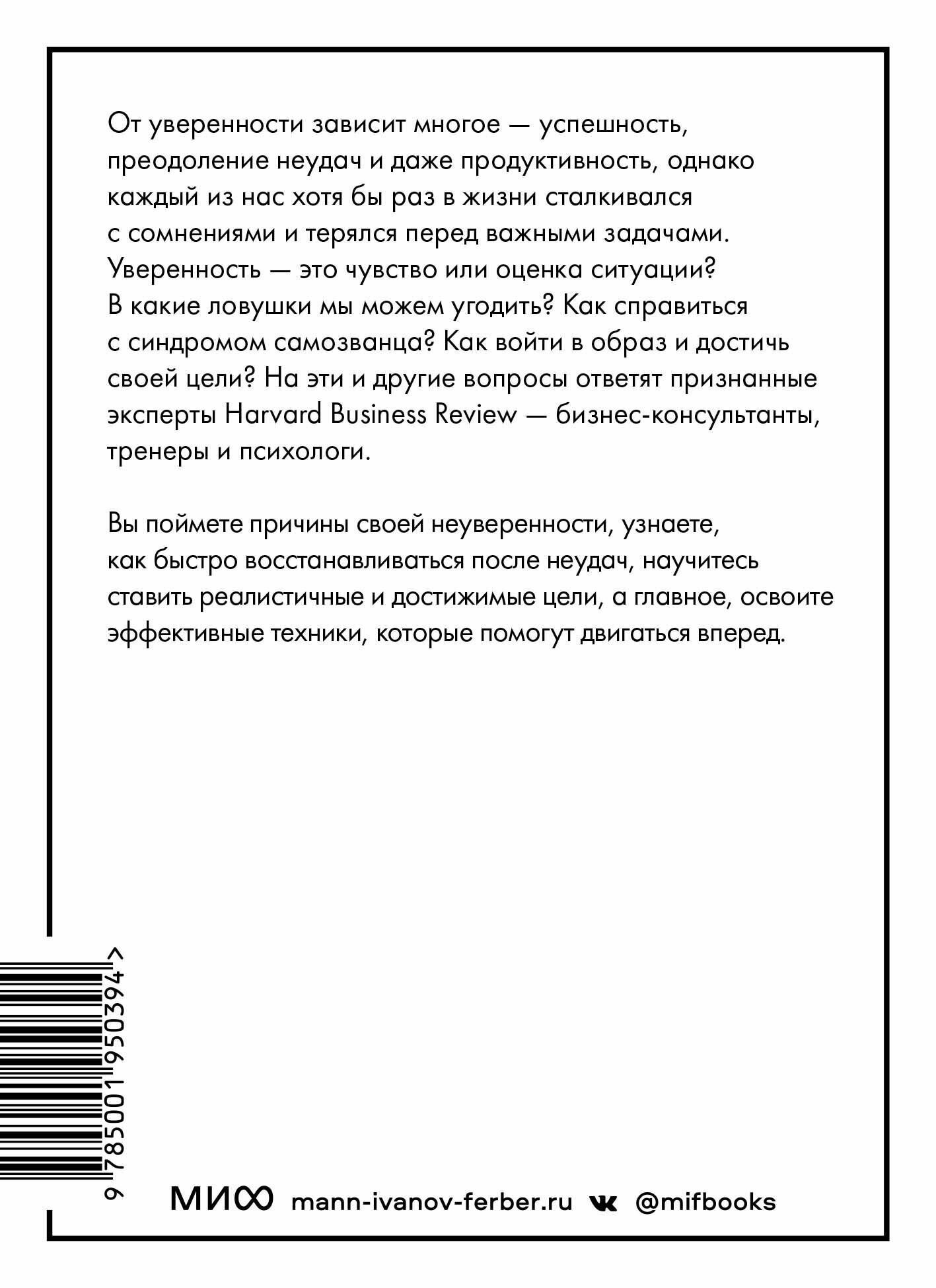 Под обложкой - более десятка статей от экспертов Harvard Business Review, которые рассматривают тему уверенности под различными ракурсами: от синдрома самозванца до уверенной самопрезентации на собеседовании.