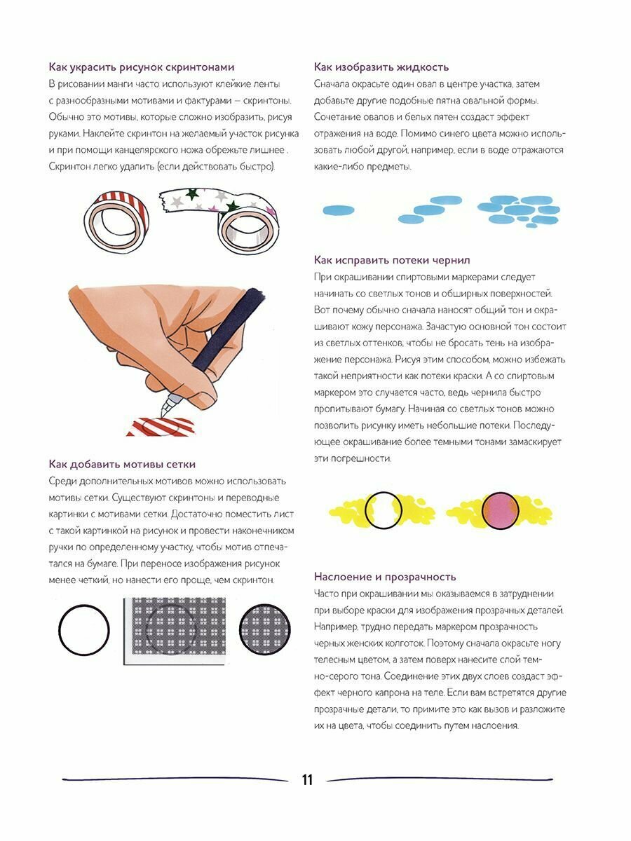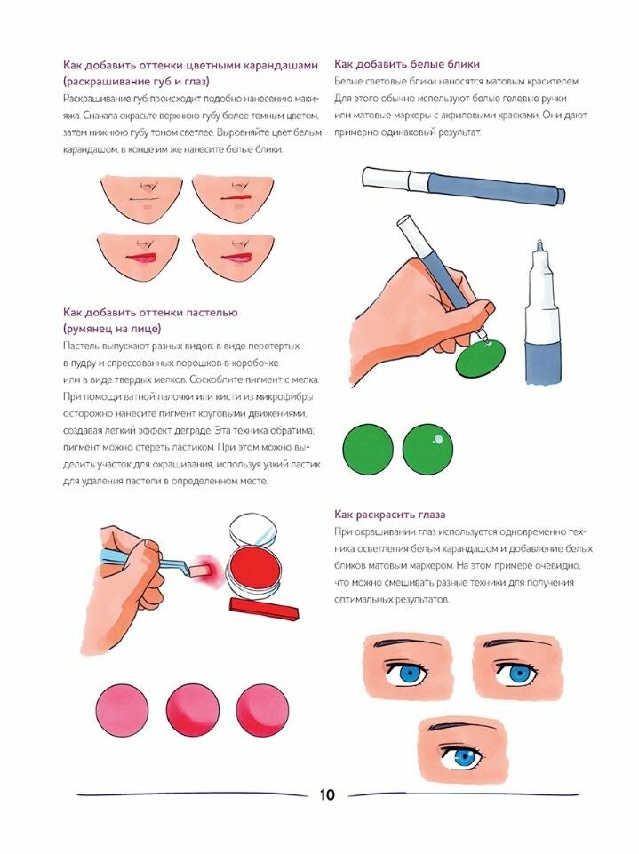 Семь иллюстраций с пошаговыми описаниями помогут вам создать красочные аниме-арты. Переведите рисунок-шаблон на бумагу или работайте прямо в этом пособии; запаситесь любимыми принадлежностями для рисования, в нашем случае это – спиртовые маркеры, цветные карандаши и пастель, – и в путь!