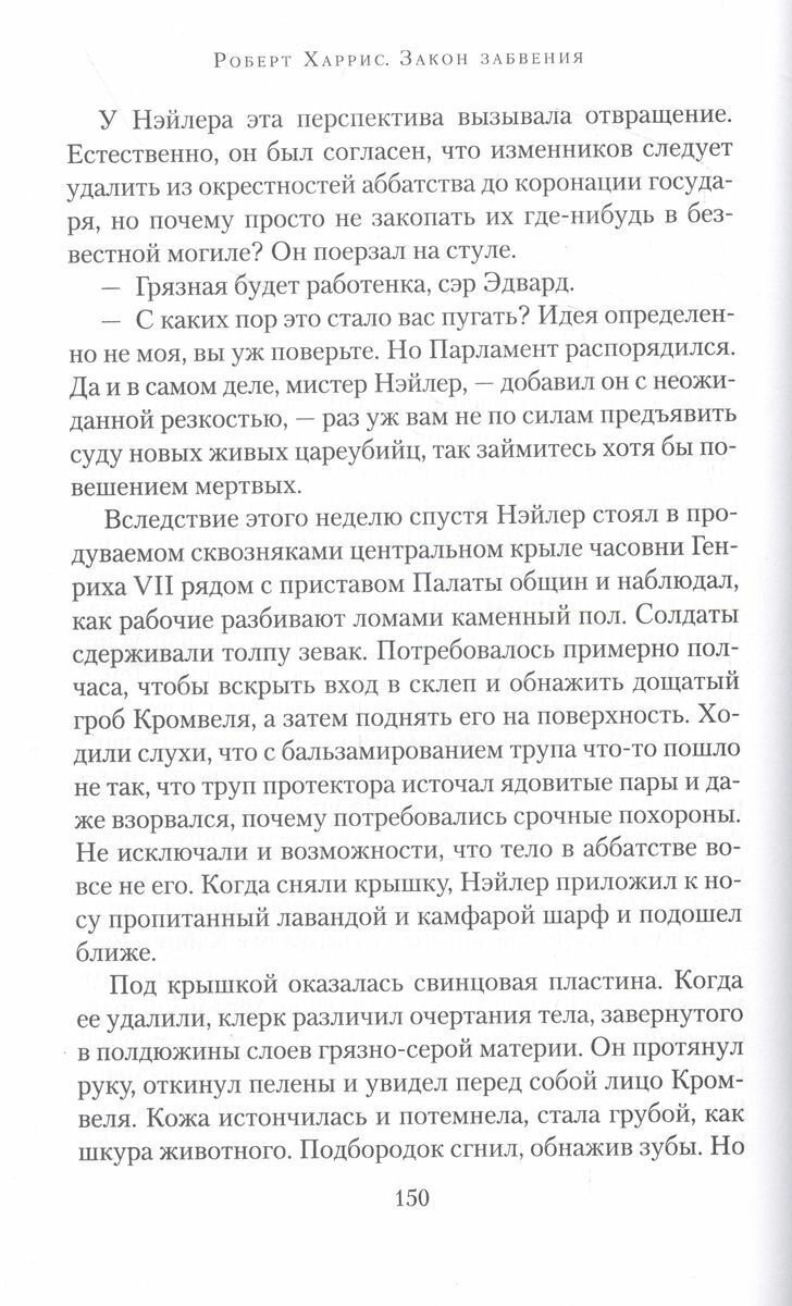 Произведением «Закон забвения» считается одним из лучших романов Роберта Харриса. Переплетающиеся сюжетные линии по обе стороны Атлантики воссоздают бурную эпоху гражданской войны в Англии и ее последствия. Изображение Харрисом колониальной Новой Англии оживляет эпоху, которую многие оценивают лишь чутка смутно, но которая имеет фундаментальное значение для понимания течений, приведших к американской революции. Всё это передано через историю, столь же захватывающую, как «Отверженные», но с главными героями и антагонистами, где каждый из которых обладает гораздо большей моральной двусмысленностью, чем персонажи великого романа Гюго. Я настоятельно рекомендую это вам.