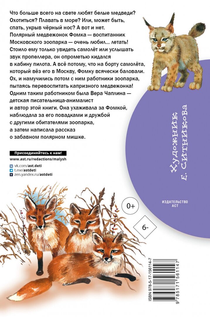 На сегодняшний день товар «Книга: Фомка - белый медвежонок (Вера Чаплина); АСТ, Малыш, 2023» можно купить с кешбеком в 5 магазинах: book24, ЛитРес, Буквоед, Читай-город, Яндекс.Маркет