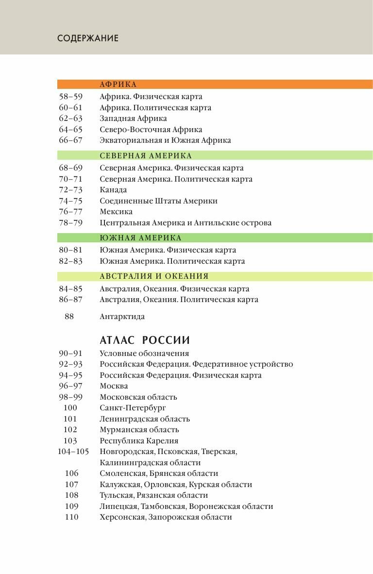 В атласе России представлены карты всех субъектов Российской Федерации. Для каждого из них приведены справочные сведения о площади территории и численности населения. Россия представлена в новых границах: с Донецкой и Луганской Народными республиками, Запорожской и Херсонской областями, Республикой Крым и Севастополем.