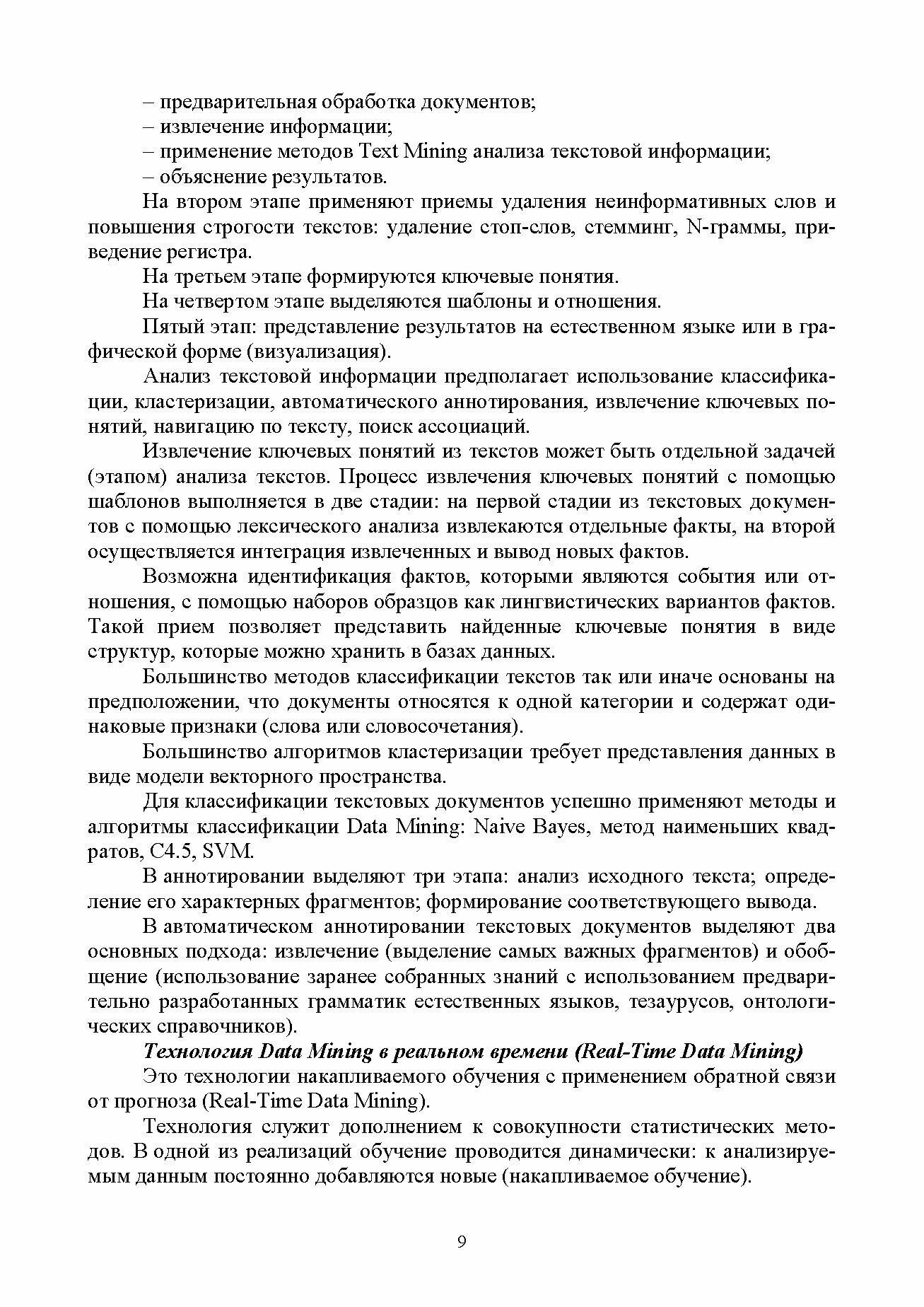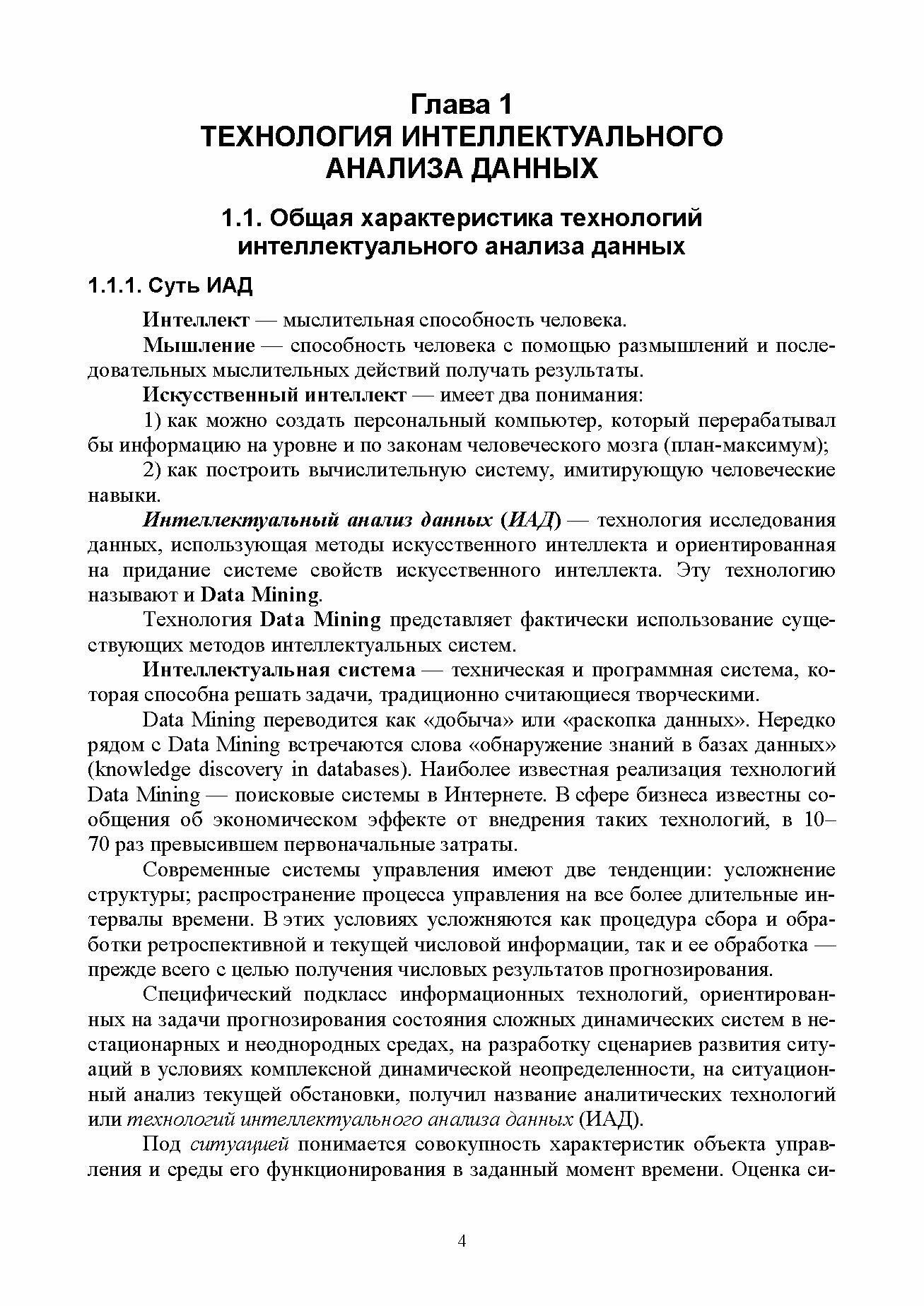 Рассмотрен комплекс проблем разработки, функционирования и проектирования процессов и систем в рамках интеллектуального анализа данных. Материал, изложенный в книге, развивает фундаментальные знания в области информационных технологий и обобщает опыт прикладных разработок в данной области.