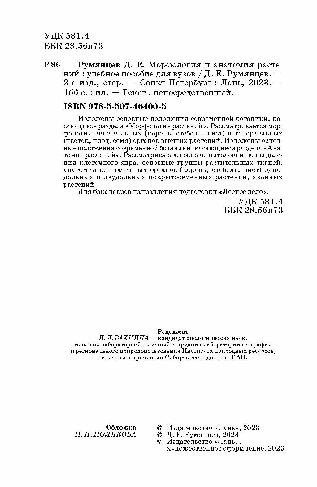 Морфология и анатомия растений. Учебное пособие (Румянцев Денис Евгеньевич); Лань, 2023