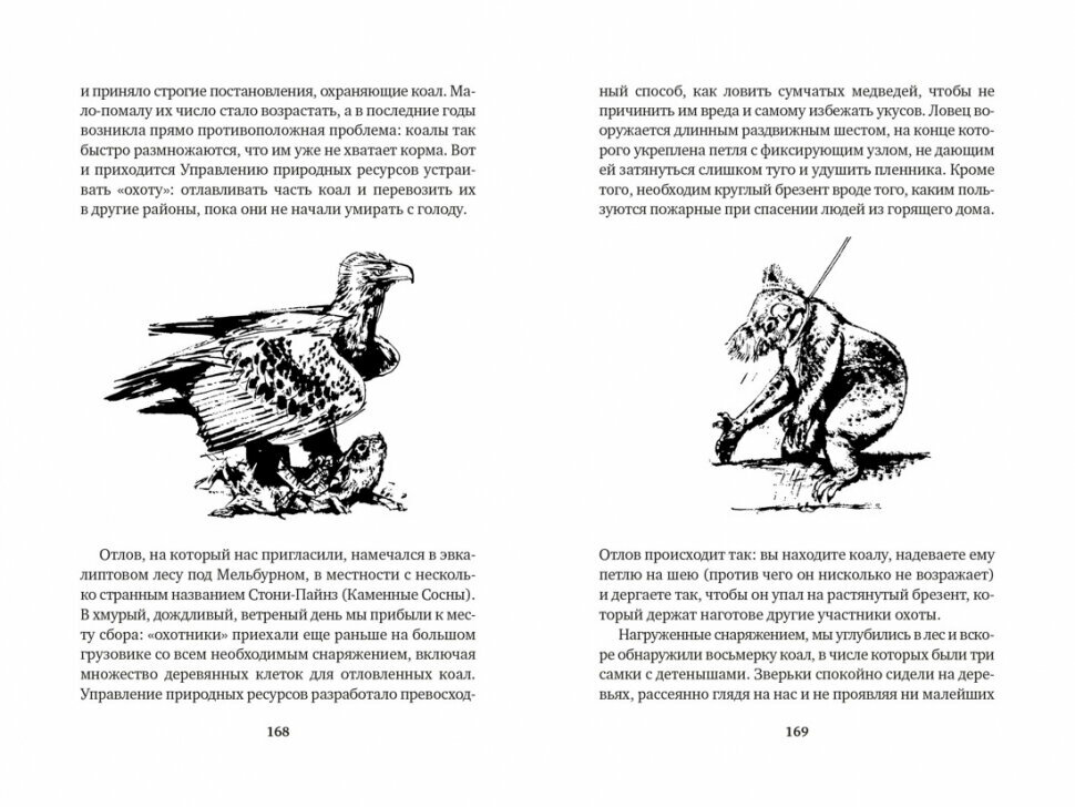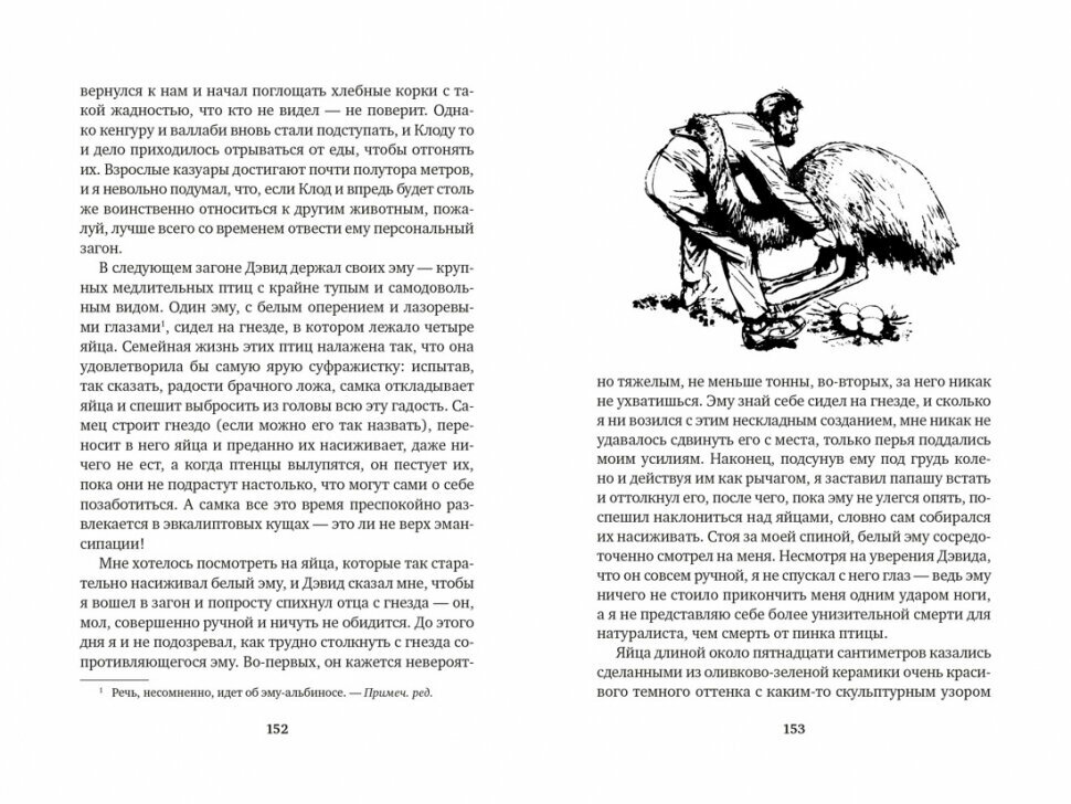 Очередная книга Даррелла в серии с двумя порвестями. Издание иллюстрированное, но они конечно на троечку, так что бы было, а в остальном выполнено добротно, хороший толстый белый офсет, цветные форзацы, рельефная обложка, выглядит отлично. Первая повесь об Австралии и Новой Зеландии, так же присутствует юмор и не повторимый стиль автора погружать читателя в атмосферу природы и животного мира других стран.Вторая вещь переносит нас в Африку и здесь ловим неведомого зверя колобуса. Как всегда атмосферно и замечательно для любого возраста.
