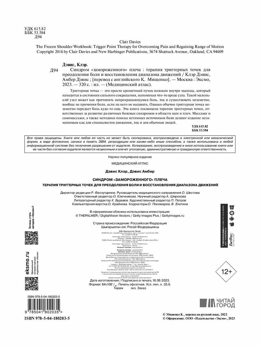 Синдром «замороженного» плеча. Терапия триггерных точек для преодоления боли и восстановления диапазона движений (Клэр Дэвис, Амбер Дэвис); Эксмо, МЕДПРОФ, 2025
