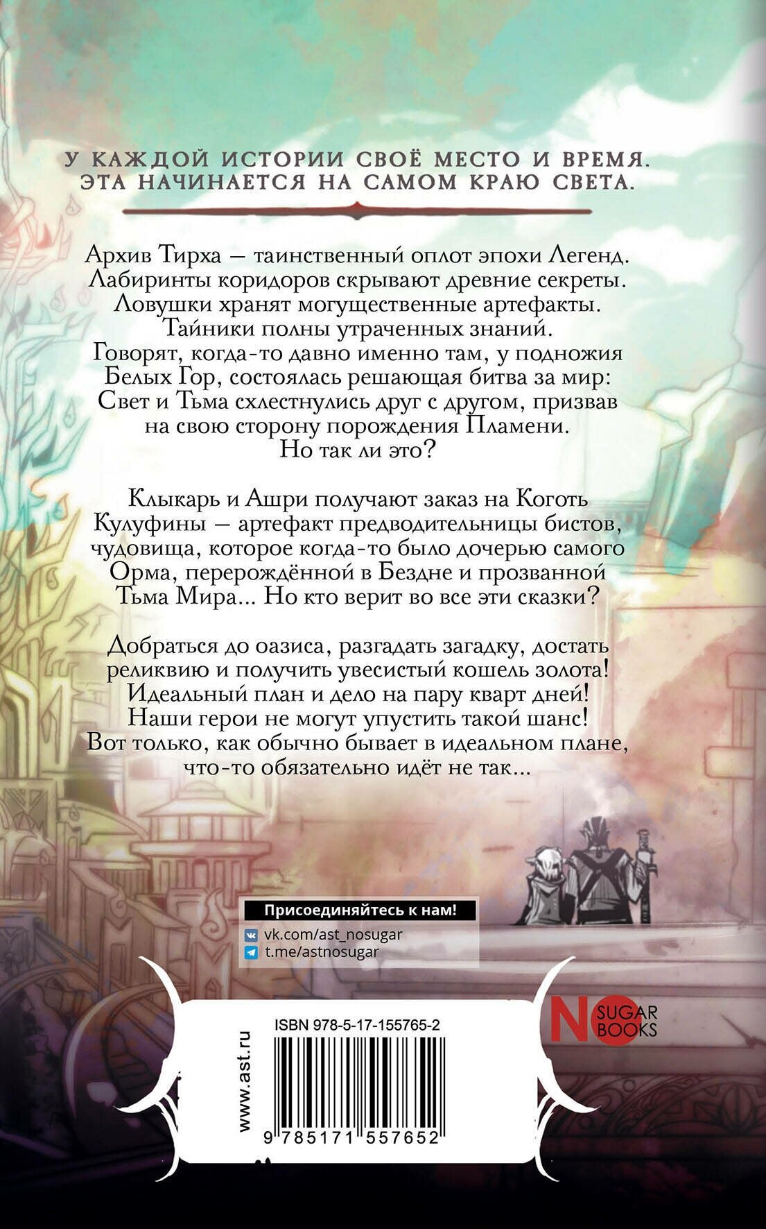 Клыкарь и Ашри получают заказ на Коготь Кулуфины - артефакт предводительницы бистов, чудовища некогда бывшее дочерью самого Орму, перерождённой в Бездне и прозванной Тьма Мира… Но кто верит во все эти сказки? Добраться до оазиса, разгадать загадку, достать реликвию и получить увесистый кошель золота! Идеальный план и дело на пару кварт дней! Наши герои не могут упустить такой шанс! Вот только, как обычно бывает в идеальном плане, что-то обязательно идёт не так…