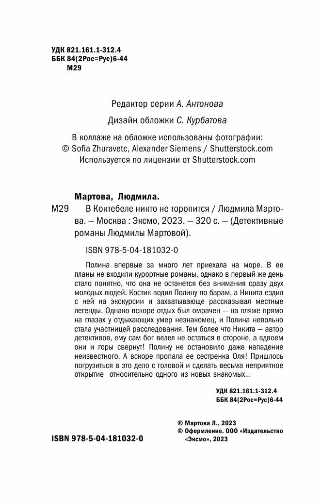 В Коктебеле никто не торопится (Людмила Мартова); Эксмо, Редакция 1, 2023