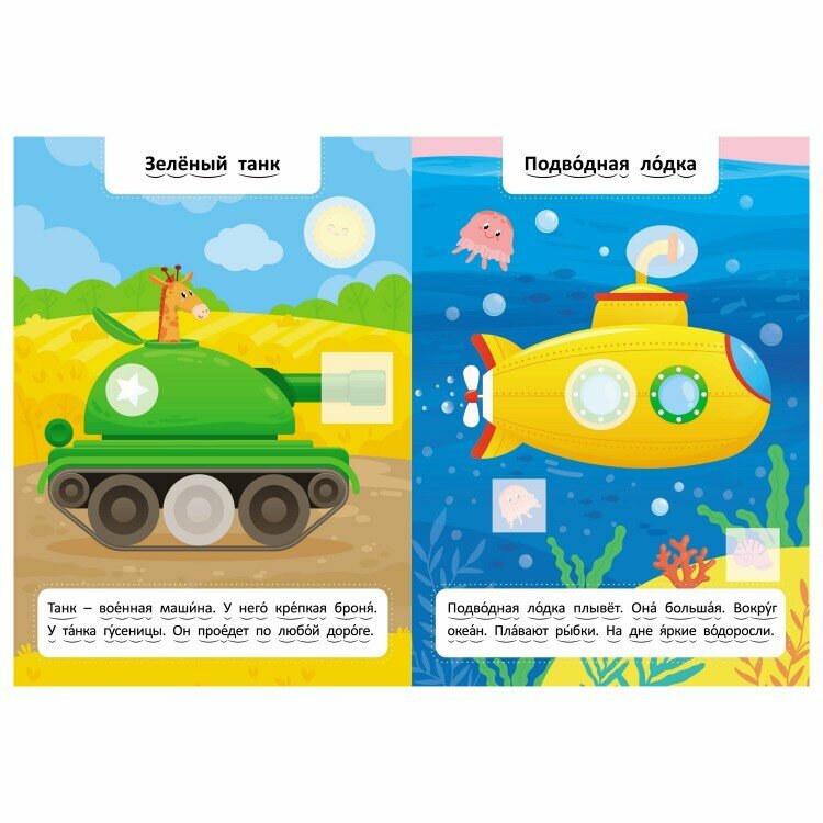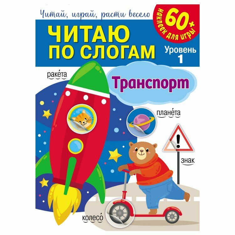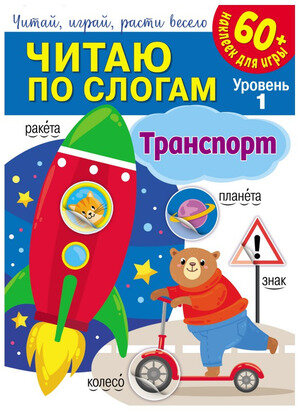 Как научить ребенка читать быстро и легко? Предложите ему короткие несложные тексты про любимых героев, яркие иллюстрации для поддержания внимания и увлекательную игру с наклейками. «Читаю по слогам» - серия книг, которая поможет ребенку научиться читать и постепенно улучшить этот навык. Развивающая книга «Транспорт» 1 уровня состоит из коротких предложений и простых грамматических конструкций – по 2 строчки на каждой странице. Тексты отпечатаны крупным и четким шрифтом.Слова разделены по слогам подстрочными символами: такое деление помогает правильно сгруппировать буквы и не мешает видеть слово целиком. Ударения обозначены сверху, над каждым словом. Игры с геометрическими наклейками помогут отдохнуть и удержать интерес ребенка на занятии. В каждой книге – более 60 ярких наклеек. Книги предназначены для детей 4-6 лет.