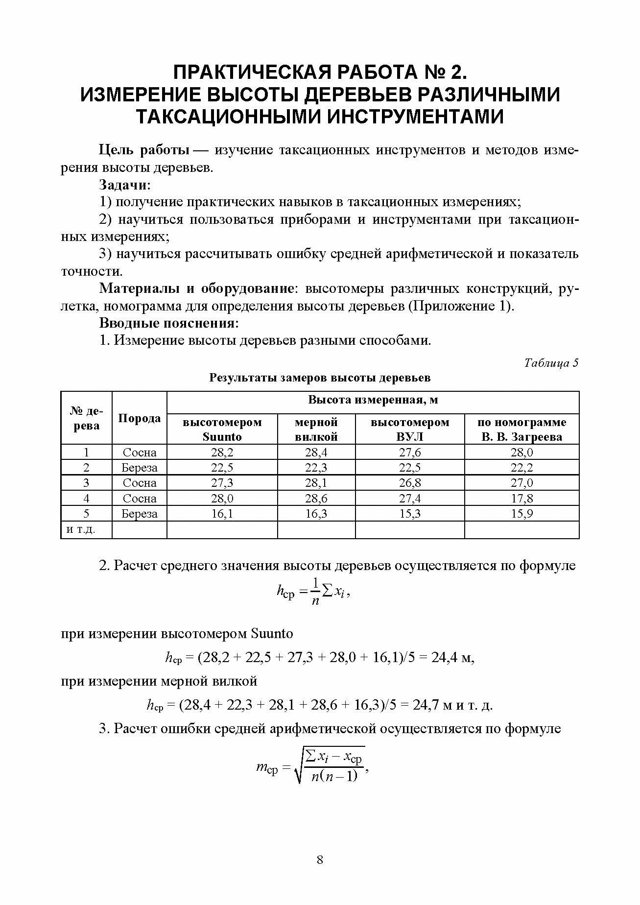 В учебном пособии рассмотрены основные лесотаксационные расчеты, применяемые для определения ряда показателей, используемых при таксации леса и лесопродукции. Оно включает одиннадцать практических работ по основным разделам лесной таксации. В начале каждой работы поставлены расчетные задачи, которые необходимо решить. В двух первых работах расчеты проводятся по измерениям, полученным бригадой студентов непосредственно в лесном насаждении. Все остальные расчетные работы выполняются индивидуально в соответствии с выданным студенту вариантом задания. Пособие разработано для 32 вариантов. Исходные данные находятся в приложениях. В пособии приводятся примеры расчетов и оформления работ В нем включены все необходимые лесотаксационные таблицы и ГОСТы в сокращенном варианте. В процессе выполнения лабораторных работ студенты приобретают навыки работы с лесотаксационными таблицами, нормативами, стандартами на лесоматериалы, проводят анализ различных способов вычисления и определения необходимых показателей. Соответствует современным требованиям Федерального государственного образовательного стандарта среднего профессионального образования и профессиональным квалификационным требованиям. Для студентов техникумов и колледжей, обучающихся по специальности «Лесное и лесопарковое хозяйство».