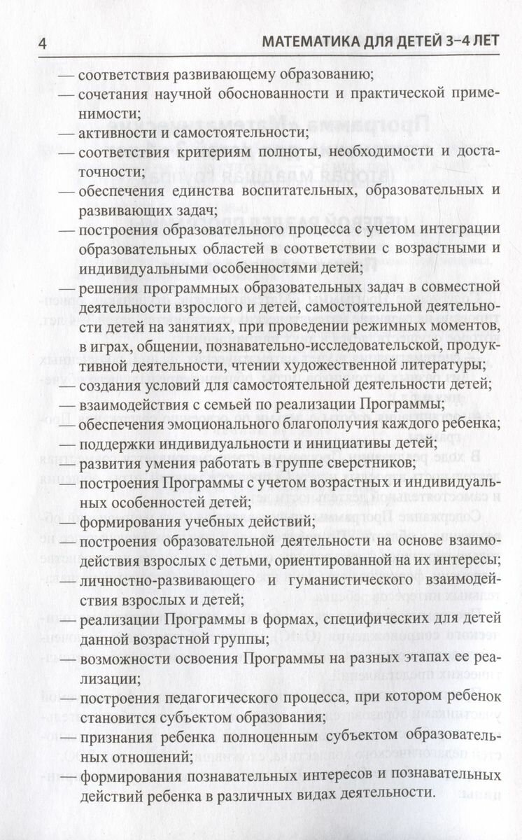 В организационно-методическое сопровождение программы «Математические ступеньки» для детей 3–4 лет входят: 1) данное методическое пособие, 2) рабочая тетрадь «Я начинаю считать», 3) демонстрационный материал, 4) книги дополнительного комплекта.