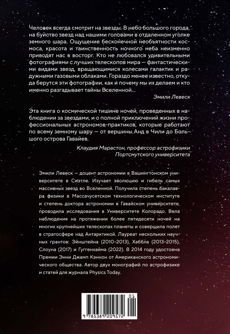С тех пор как Галилей впервые направил телескоп на звезды, астрономия стала кладезем развития творческого начала и бесконечным источником открытий. Эмили Левеск описывает мир профессионального астронома, прославляет изобретательность и любознательность и не перестает удивляться чудесам Вселенной.