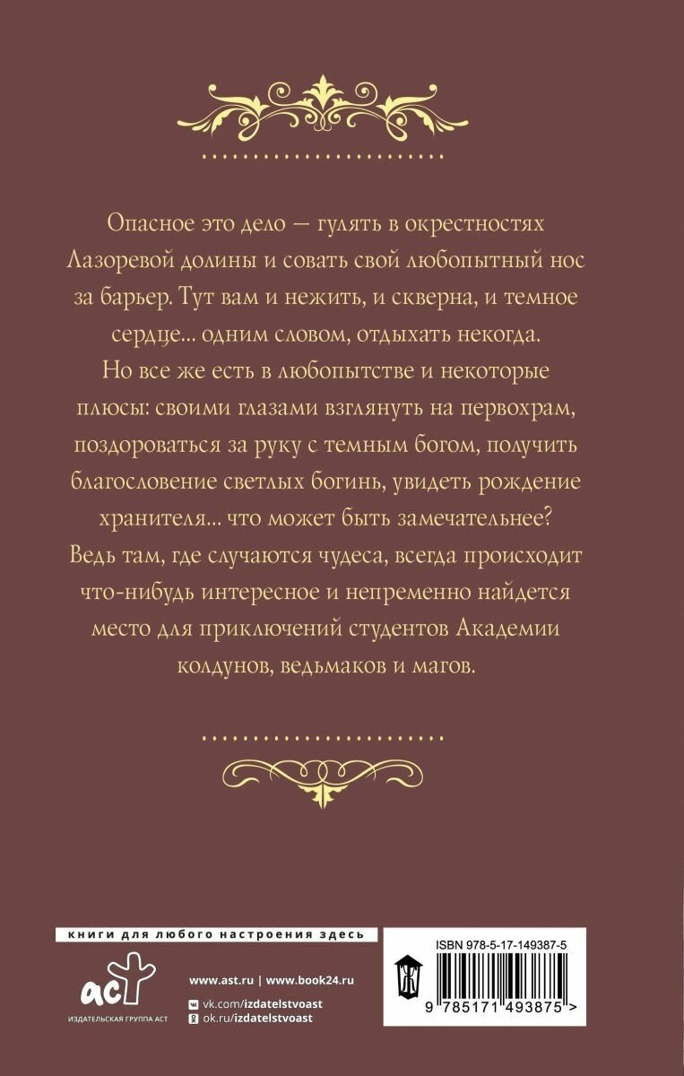 Опасное это дело — гулять в окрестностях Лазоревой долины и совать свой любопытный нос за барьер. Тут вам и нежить, и скверна, и темное сердце… одним словом, отдыхать некогда. Но все же есть в любопытстве и некоторые плюсы: своими глазами взглянуть на первохрам, поздороваться за руку с темным богом, получить благословение светлых богинь, увидеть рождение хранителя… что может быть замечательнее? Ведь там, где случаются чудеса, всегда происходит что-нибудь интересное и непременно найдется место для приключений студентов Академии колдунов, ведьмаков и магов.