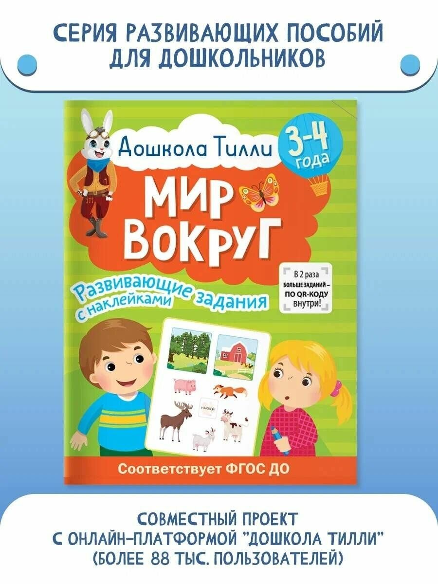 3-4 года. Дошкола Тилли. Мир вокруг. Развивающие задания с наклейками (Гаврина Светлана Евгеньевна; Топоркова Ирина Геннадьевна; Щербинина Светлана Владимировна; Кутявина Наталья Леонидовна); ИЗДАТЕЛЬСТВО "АСТ", 2023