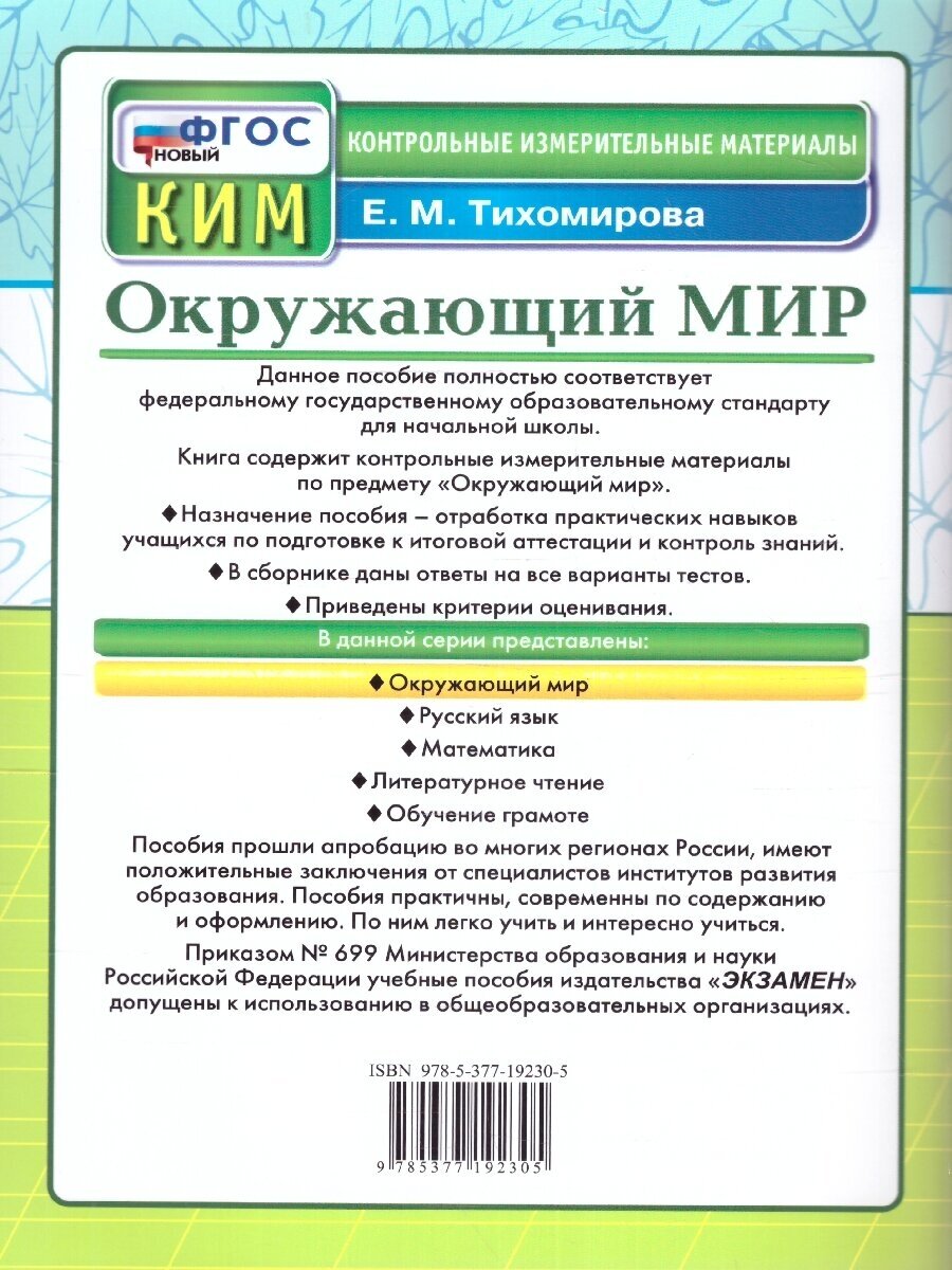 Окружающий мир. 2 класс. Контрольные измерительные материалы (Елена Михайловна Тихомирова); Экзамен, 2024