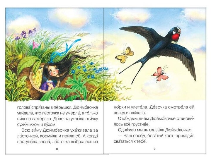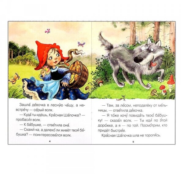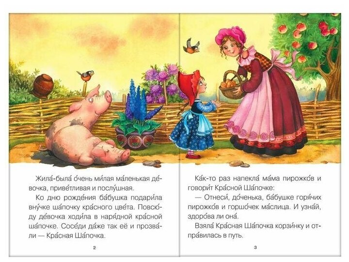 Чтение любимой сказки обязательно увлечет ребенка. Ему будет легко воспринять текст, благодаря крупному шрифту и расставленным в словах ударениям, а великолепные иллюстрации помогут удержать его интерес, ребенок с удовольствием дочитает сказку до конца.