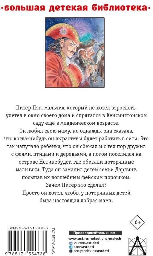 На сегодняшний день товар «Книга: Питер Пэн. Сказочные повести (Джеймс Мэтью Барри); АСТ, 2023» можно купить с кешбеком в 5 магазинах: book24, ЛитРес, Буквоед, Яндекс.Маркет, Читай-город