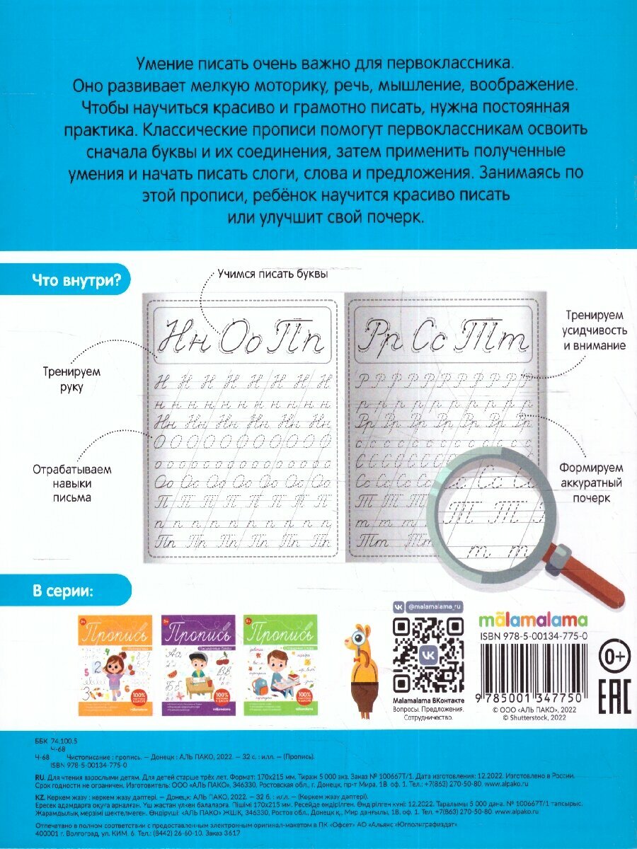 Сервис сравнения цен СкидкаГИД предлагает сравнить цены на товар «Книга: Пропись. Чистописание (без автора); Malamalama, 2022»