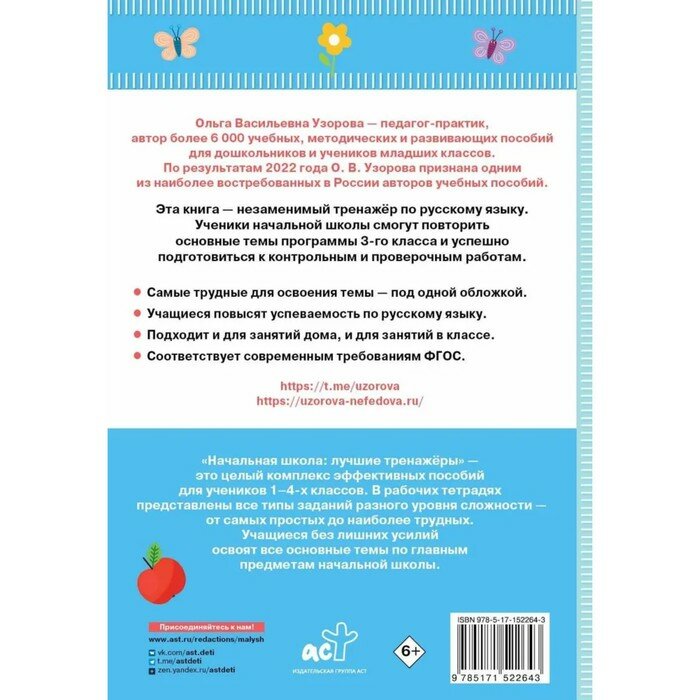 Тренажер по русскому языку. 3 класс (Узорова Ольга Васильевна, Нефёдова Елена Алексеевна); Сова. Малыш (Обучающая и развивающая литература), 2023