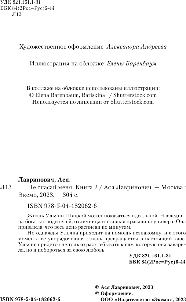 Книга: Не спасай меня. Книга 2 (Ася Лавринович); Эксмо, Like Book, Редакция 1, 2023