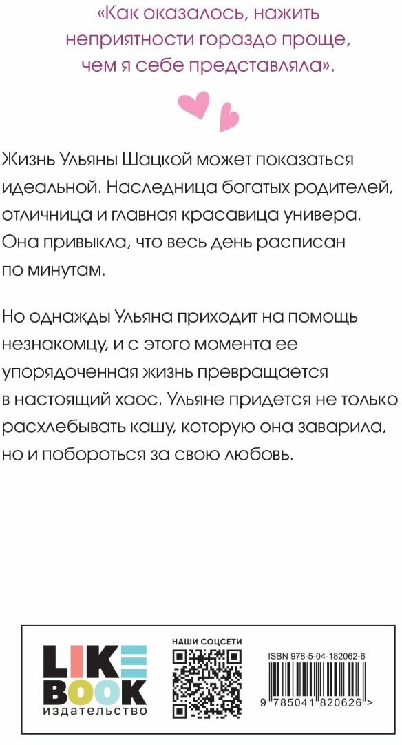 Жизнь Ульяны Шацкой может показаться идеальной. Наследница богатых родителей, отличница и главная красавица универа. Она привыкла, что весь день расписан по минутам.