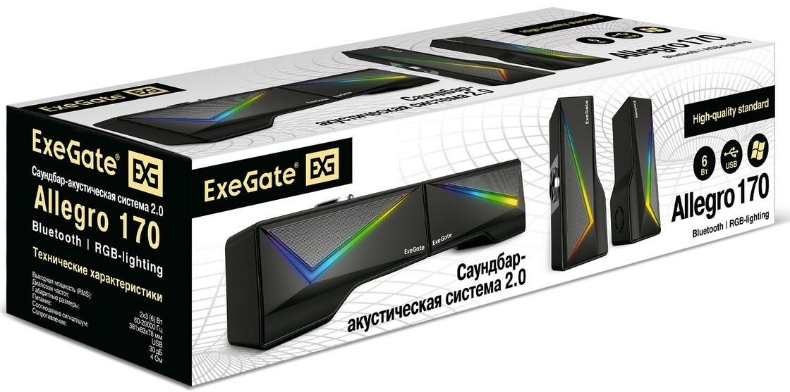 Акустическая система 2.0 Exegate EX289691RUS USB BT 2х3Вт (6Вт RMS) 60-20000Гц цвет черный RGB подсветка с возможностью трансформаци Allegro 170