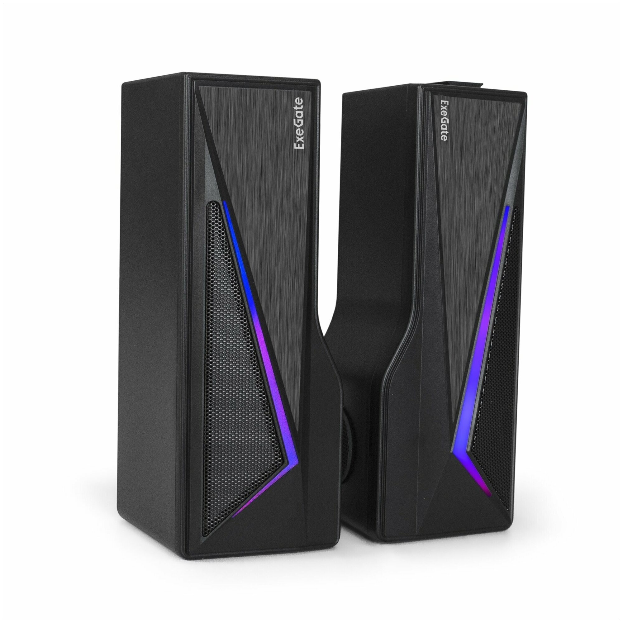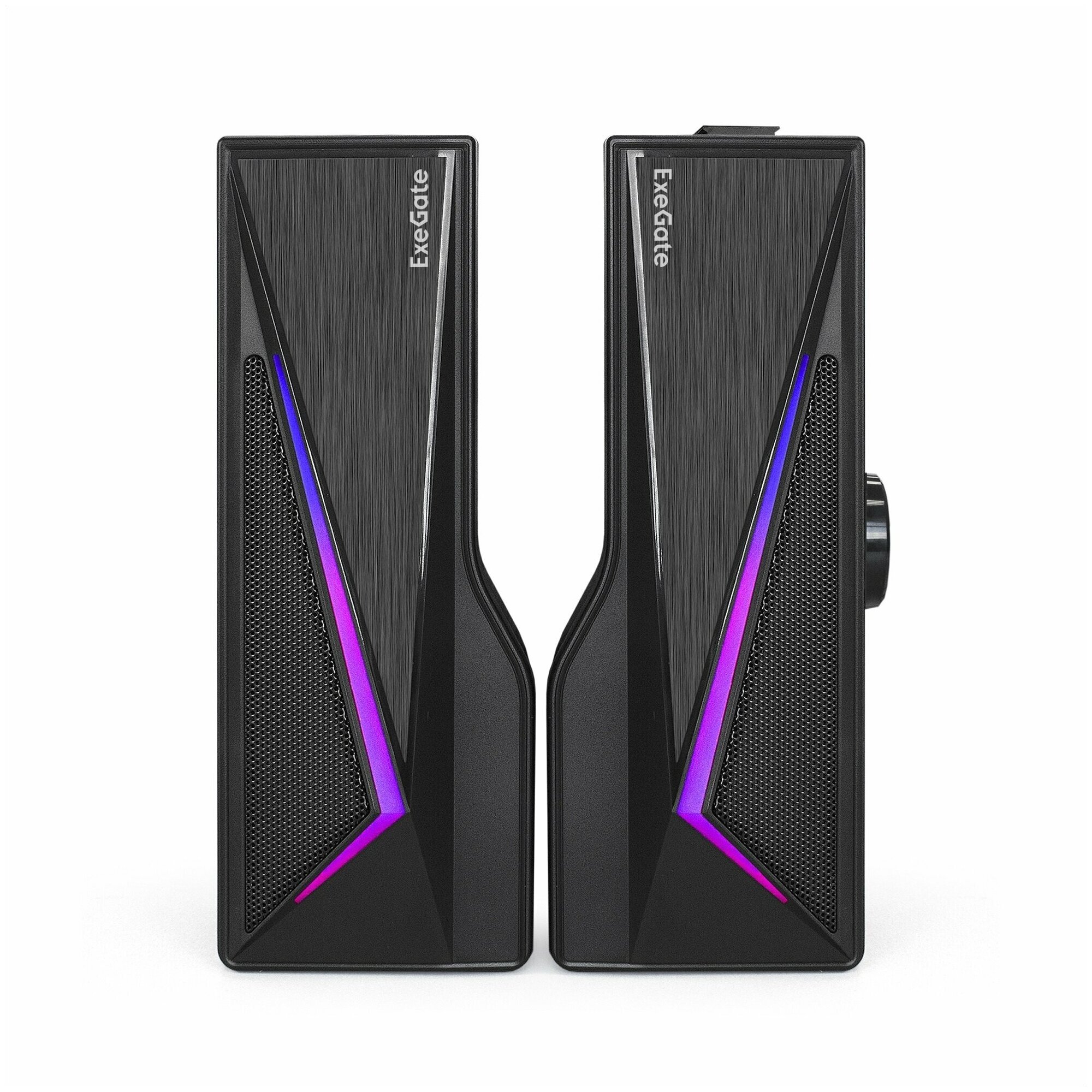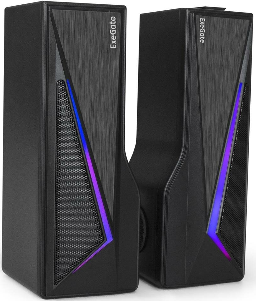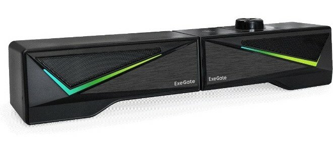 ExeGate это доступные стерео колонки (2.0), которые могут трансформироваться в саундбар. АС подходит как для прослушивания музыки, так и для просмотра фильмов. Главная особенность - эффектная RGB подсветка. Рассматриваемая модель питается от USB разъема. К источнику звука подключается посредством кабеля с штекером 3.5 мм Jack. Смартфон или планшетный компьютер можно подключить по беспроводной связи Bluetooth. Сбоку/сверху основной колонки находится колесо регулировки громкости.