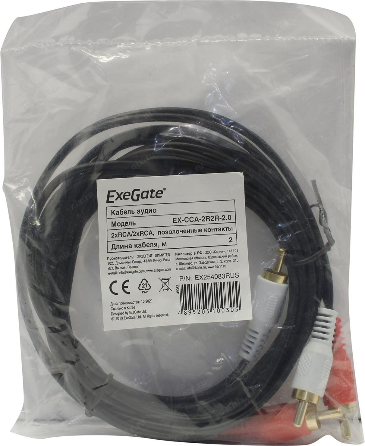 Кабель аудио Exegate EX254083RUS 2xRCA/2xRCA 2м позолоченные контакты EX-CCA-2R2R-2.0