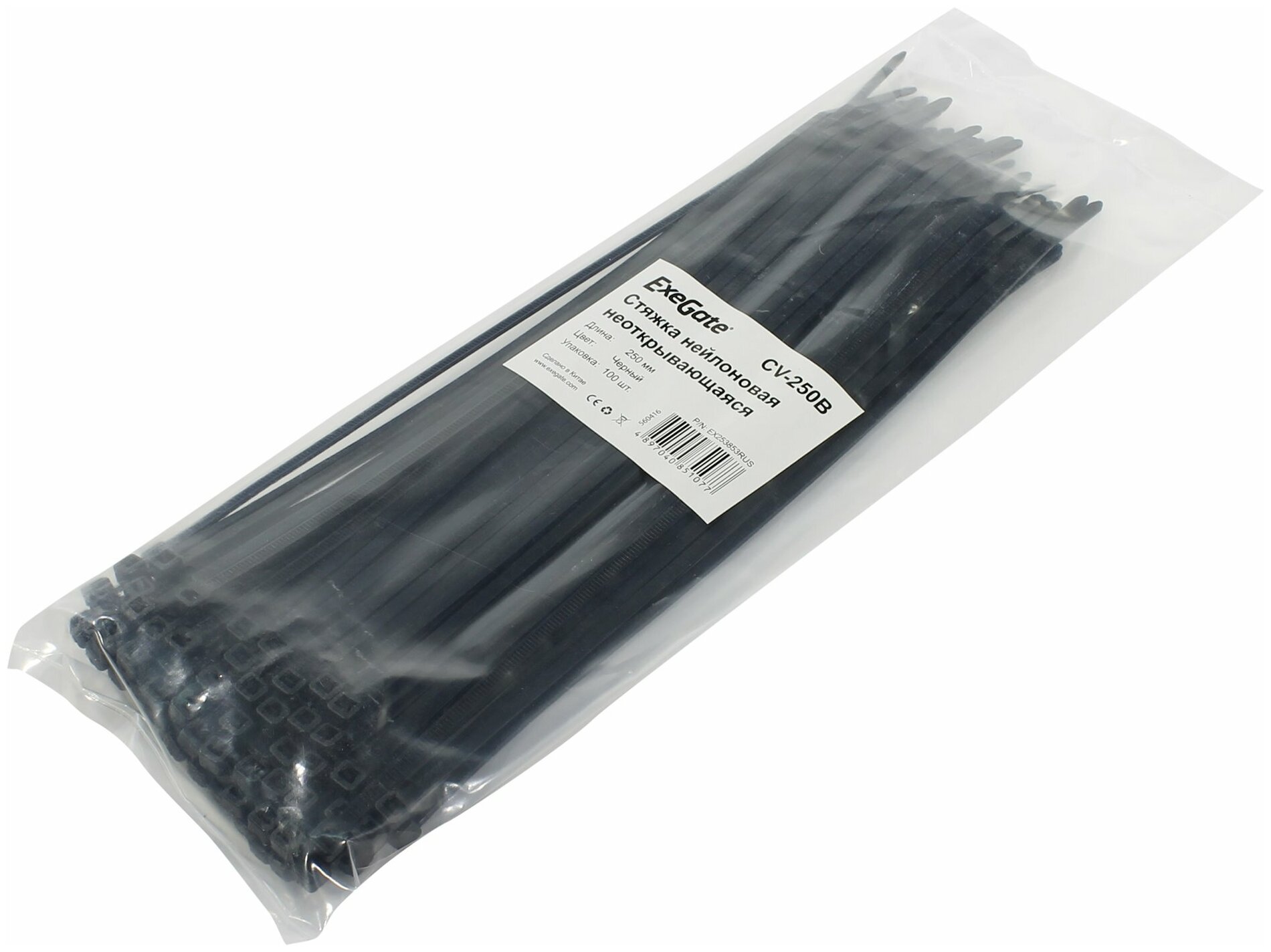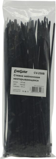 Стяжка нейлоновая не открывающаяся Exegate EX253853RUS 250x3.6мм halogen free -40°C - +85°C черная 100 шт CV66-250x3.6B
