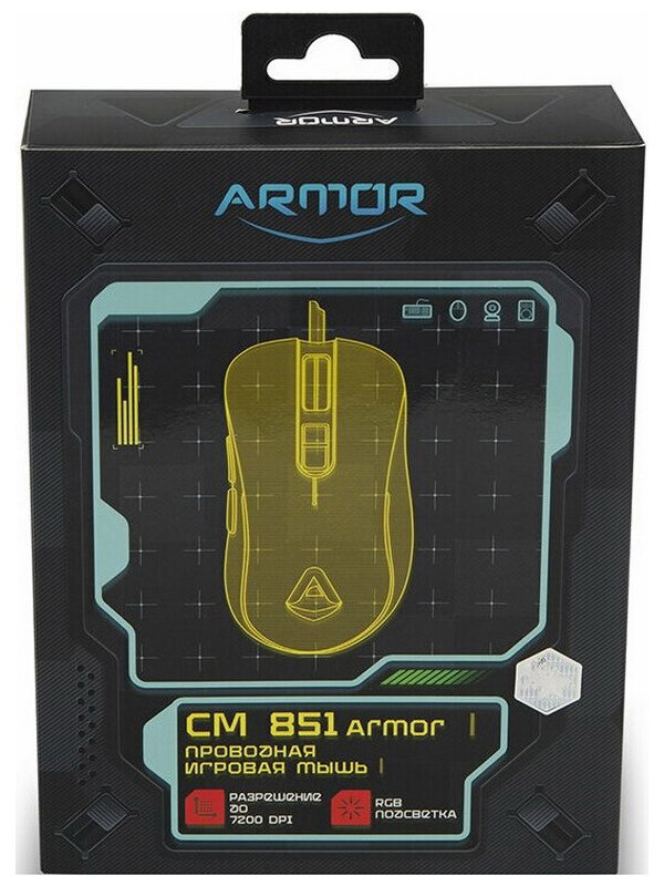 Мышь CBR игровая USB до 7200 dpi 7 программируемых кнопок и колесо прокрутки RGB-подсветка ABS-пластик 15 м чёрная CM 851 Armor