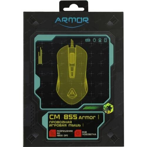 | Прочее | CBR CM 855 Armor, Мышь проводная, оптическая, игровая, USB, до 4800 dpi, 7 программируемых кнопок и колесо прокрутки, RGB-подсветка, ABS-пластик, длина кабеля 1,5 м, цвет чёрный.Данная модель обеспечит комфортную работу. Отметим удобный захват кистью правой руки, благодаря эргономичному типу корпуса.Проводная мышь для компьютера с подключением по USB имеет оптический датчик, невидимый для глаз. |