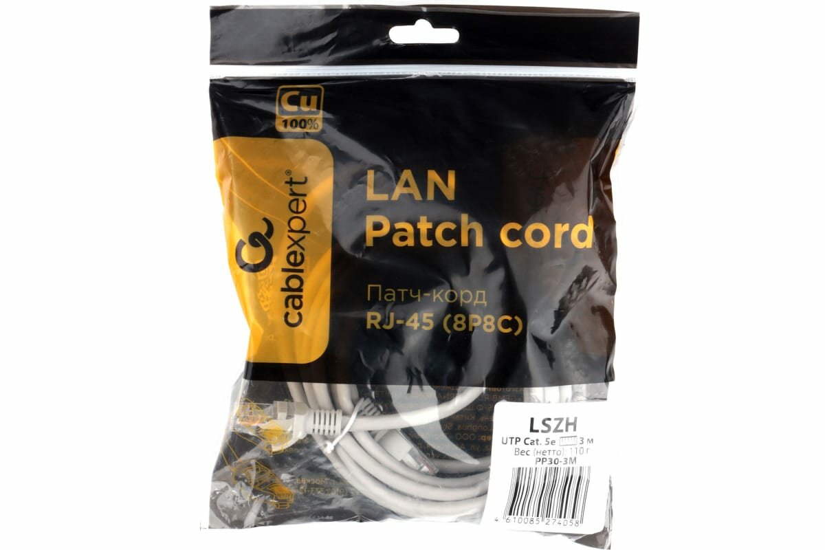 Кабель патч-корд U/UTP 5e кат. 15м Cablexpert медный литой многожильный (серый) PP30-15M