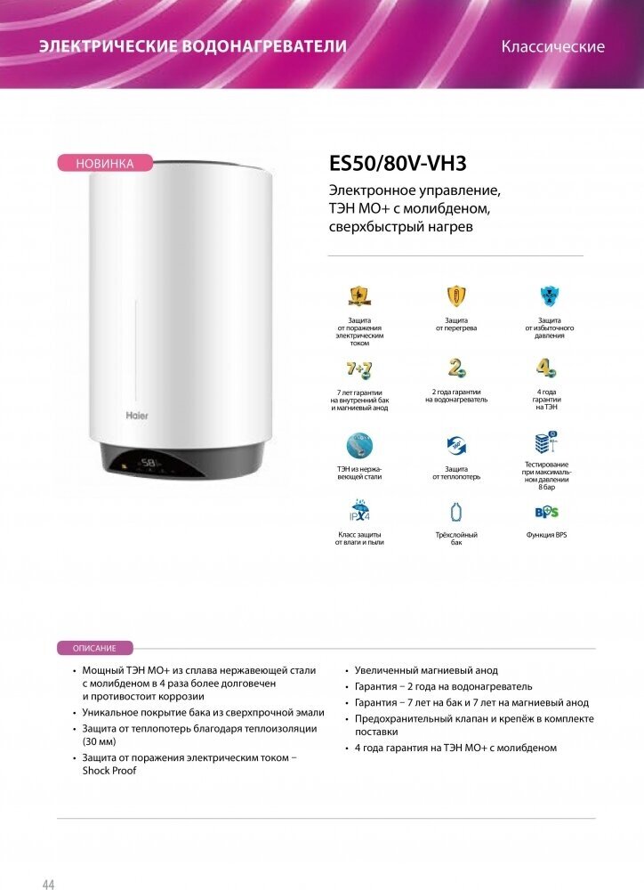 Водонагреватель Haier GA0G7LE00RU 80 л 22 / 33 кВт электронное управление ES80V-VH3